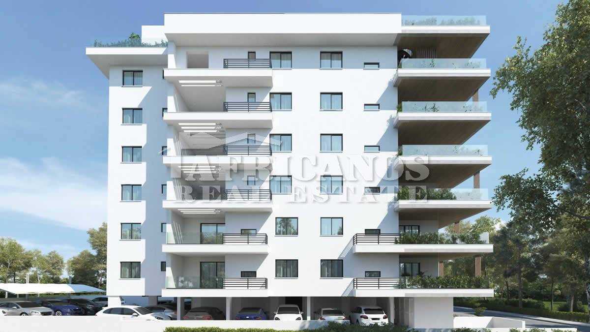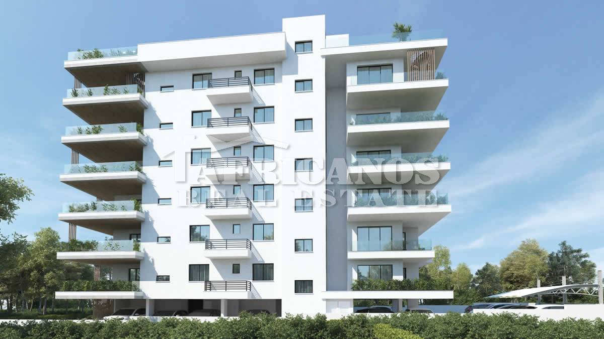 #Apartments for sale in Larnaca, American Academy area. The properties consist of 2 bedrooms, open plan kitchen, living room, 1 common shower, 1 shower en-suite, 2wc, 14 - 25sq.m. covered verandas, roof garden of 54 - 94sq.m.covered parking, storage.