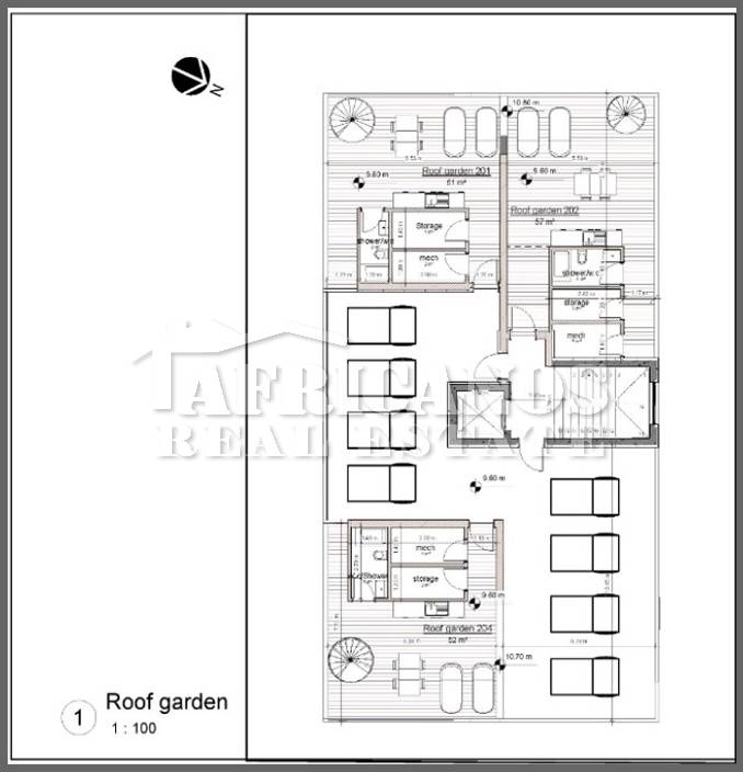 #Apartment for sale in Larnaca, Vergina area. The property consists of 1 bedroom, study, open plan kitchen, living room, 1 shower, 1wc, 11sq.m. covered veranda, 51sq.m. roof garden, covered parking, storage, Class A Energy Sufficiency, Entry phone system.