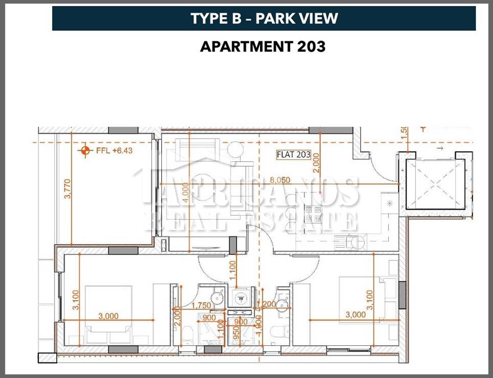 #Apartments for sale in Larnaca, Faneromeni area. The properties consist of 2 bedrooms, open plan kitchen, living room, 1 shower, 1 shower en-suite, 2wc, 13 - 18sq.m. covered veranda, covered parking, storage.