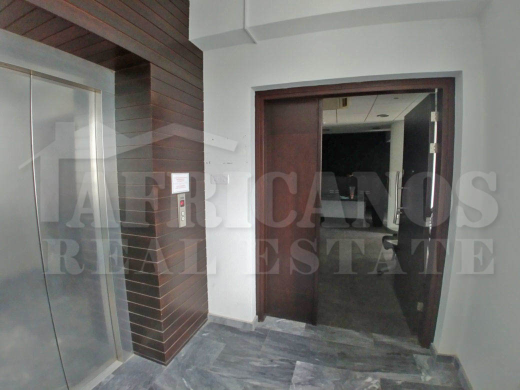 Open plan design offices with ladies`and gent`s bathrooms, kitchenette, open and covered parking