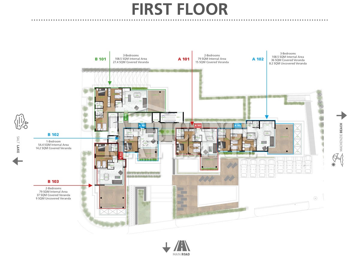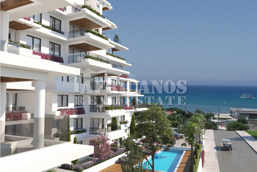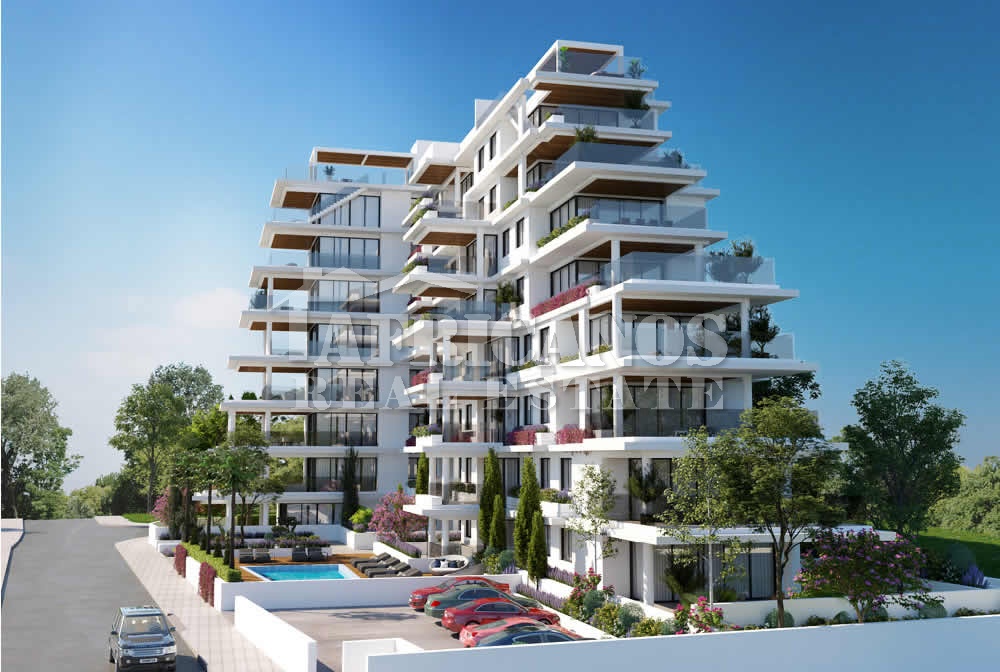 #Apartment for sale in Larnaca, Makenzy area. The property consists of 3 bedrooms, open plan kitchen, living room, 2 showers en-suite, 3wc, 36sq.m. covered veranda, common pool, covered and underground parking.