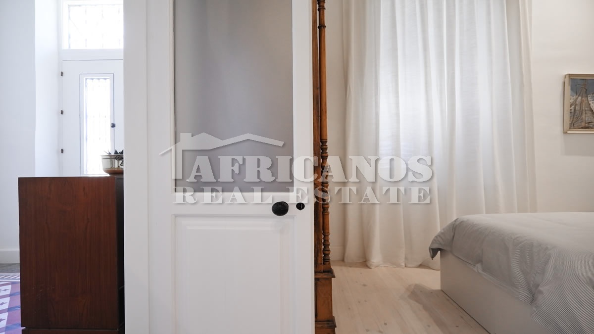 #House for rent in Larnaca. The property consists of 2 bedrooms, fully equipped open plan kitchen, hall, living room, 1 family bathroom, 1 shower en-suite, 1 cable TV, A/C, High speed internet, ceiling fans, 35sq.m. court yard, 13sq.m. uncovered veranda (Combination of antique and modern furnishings)