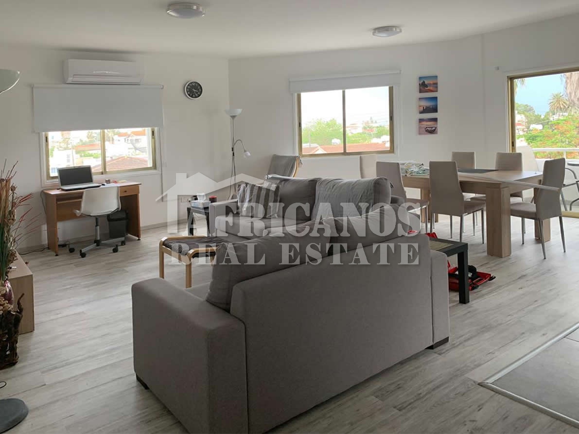 #Apartment for rent in Larnaca, Makenzy area. The property consists of 2 bedrooms, open plan kitchen, living room, 1 shower, 1wc, kitchen appliances, A/C, covered parking.