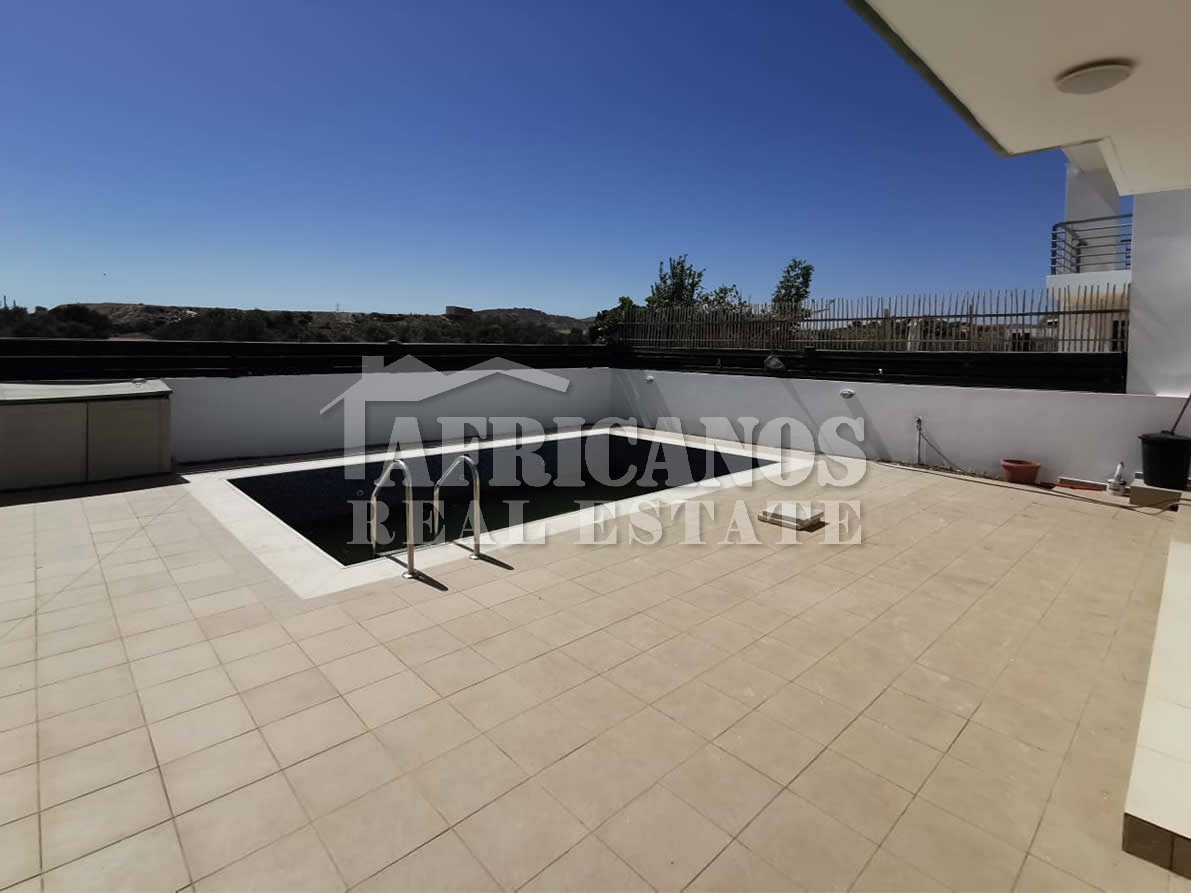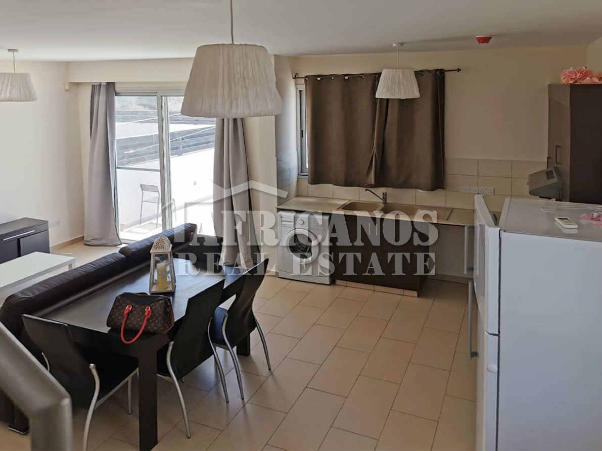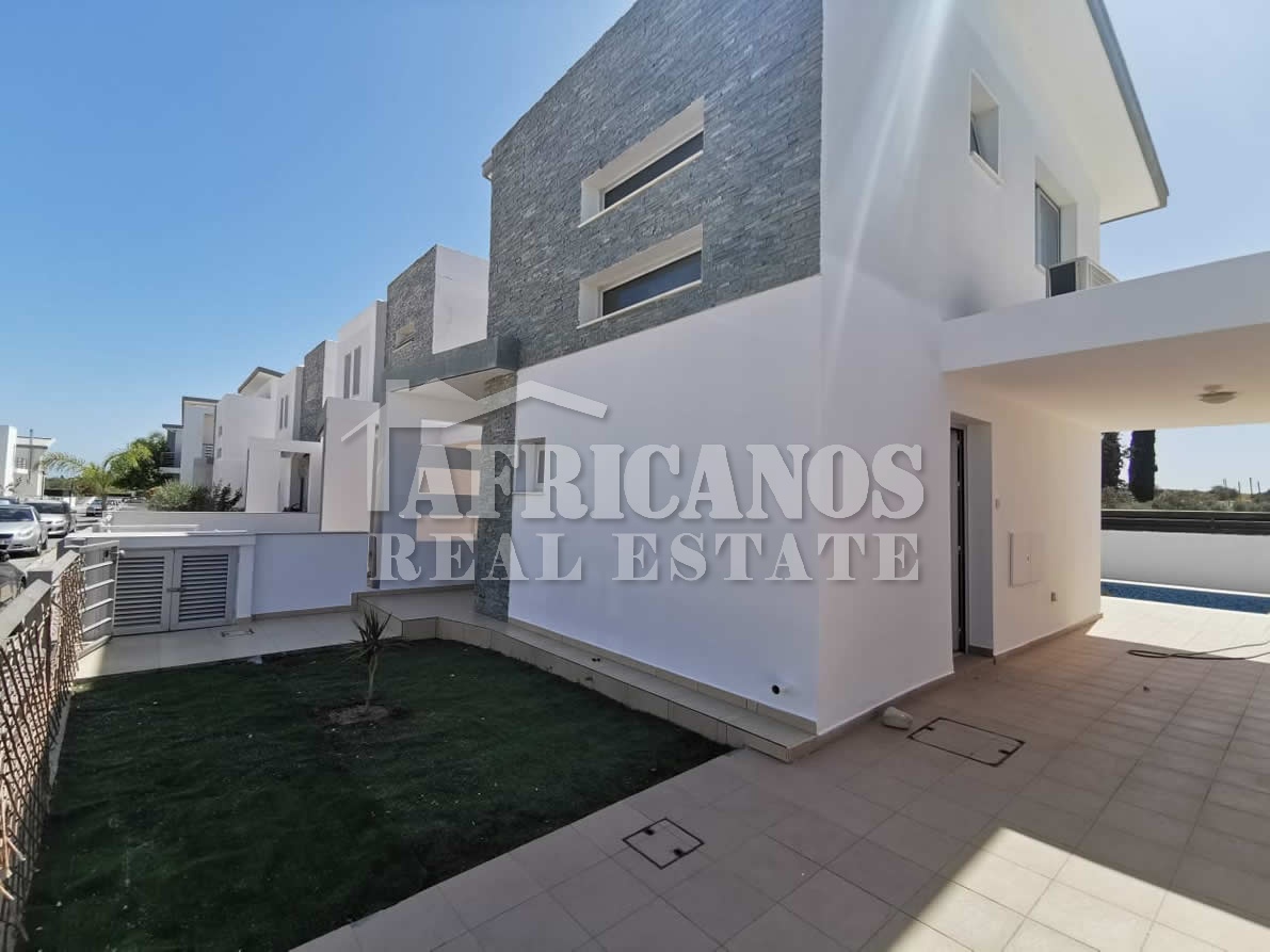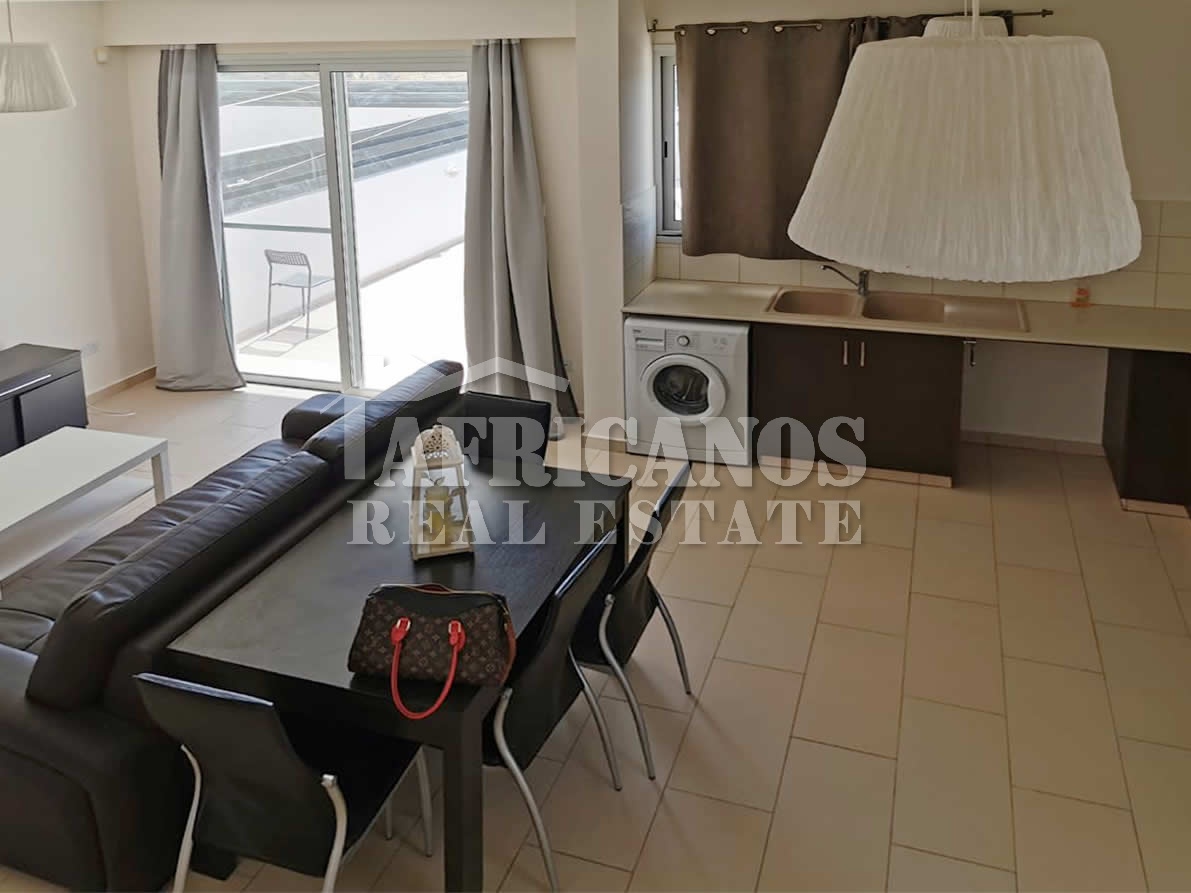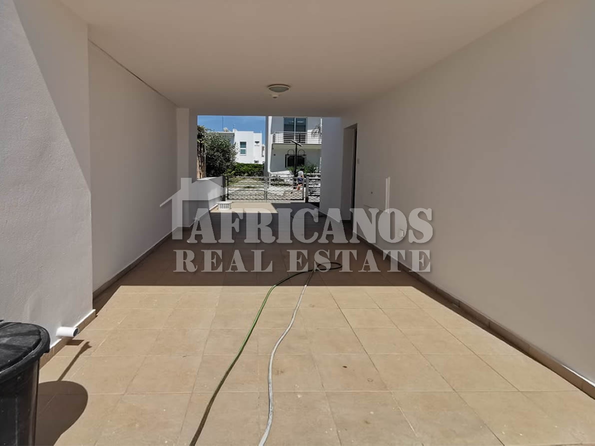 #House for rent in Larnaca. The property consists of 2 bedrooms, open plan kitchen, living room, 1 bath, 2wc, common pool, kitchen appliances, A/C, open and covered parking.
