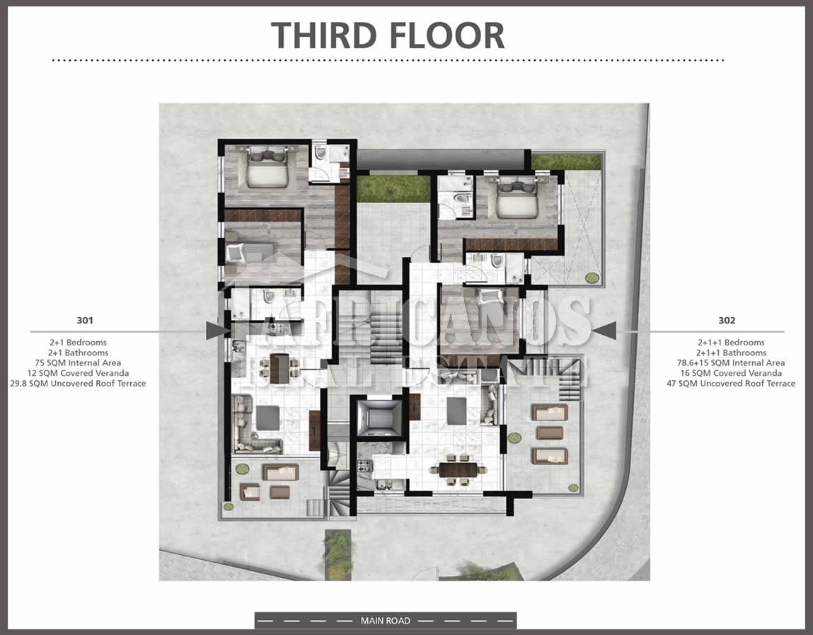 #Apartment for sale in Limassol. The property consists of 2 bedrooms, open plan kitchen, living room, 1 bath 1 shower en-suite, 2wc, 16sq.m. covered verandas, 47sq.m. roof garden, covered parking. (Provision for another 2 bedrooms with an extra shower and wc, once the title deeds have been issued)