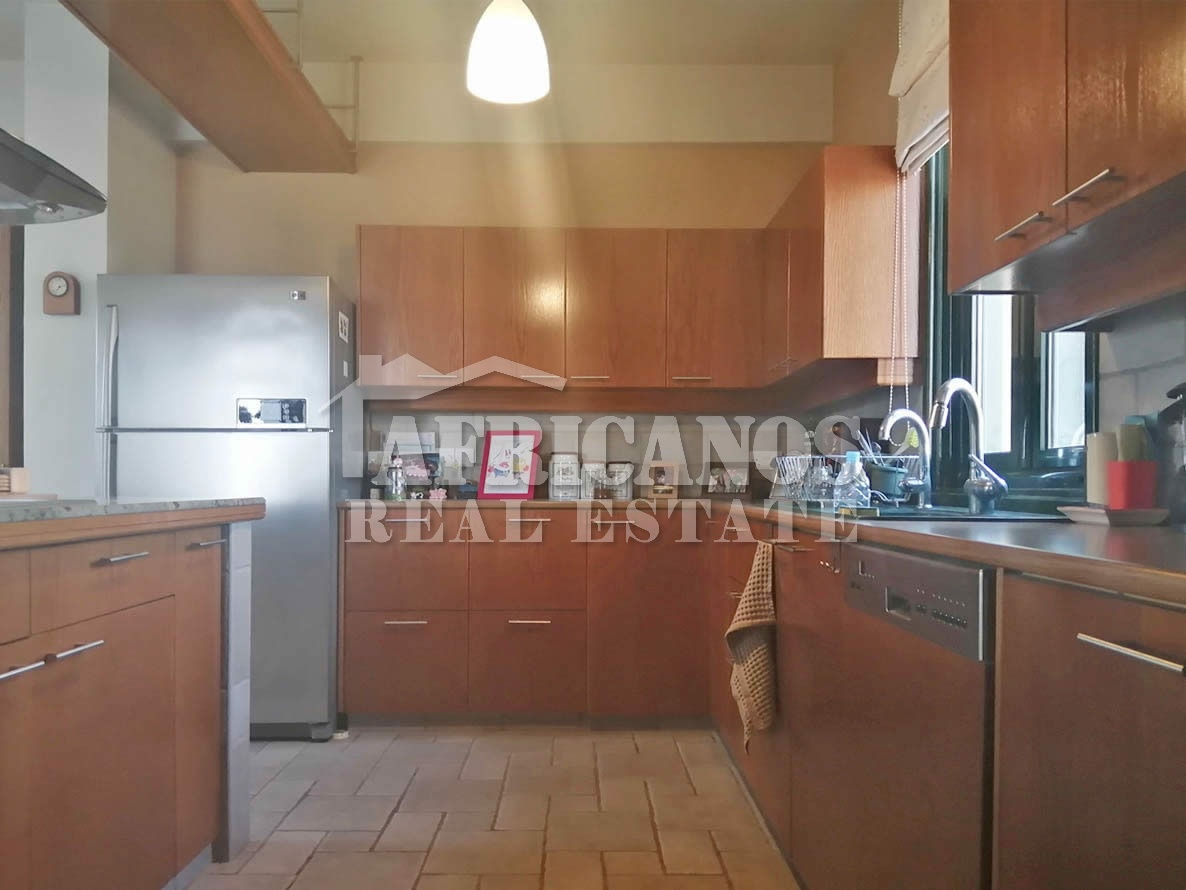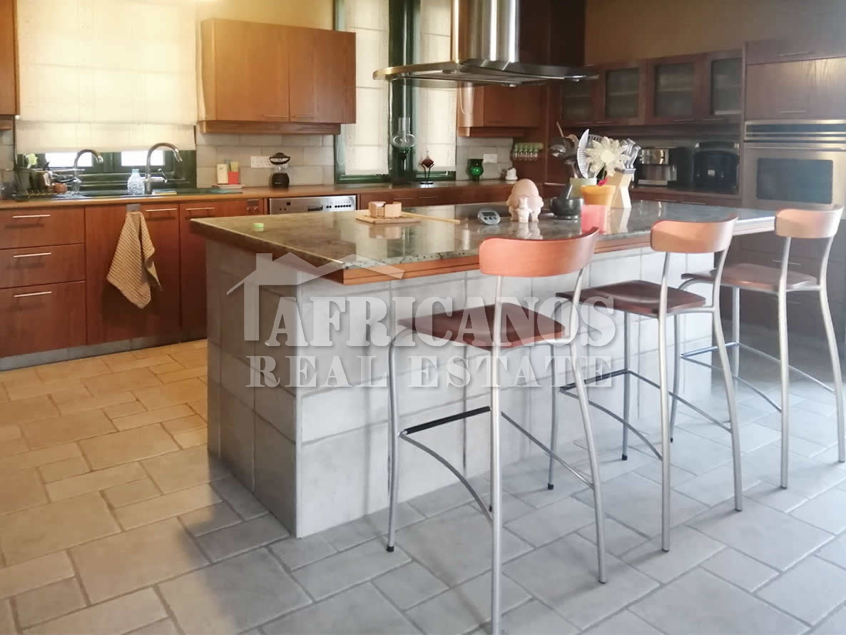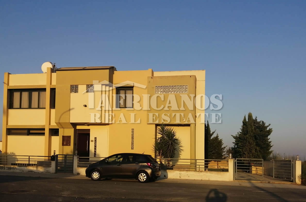 #House for sale in Larnaca. The property consists of 4 bedrooms with large closets, 2 bedrooms also have bay windows with extra storage, separate kitchen with dinning area and large storage closet, large entrance hall which surrounds the stairwell, formal lounge, separate diner, TV room, 3 showers (1 en-suite), 4wc, walking closets in master bedroom, upstairs living room, ample parking, basement storage and machinery room, provision for private pool, large verandas with panoramic views of Larnaca and the harbour, garden, bbq area, A/C, Central Heating.