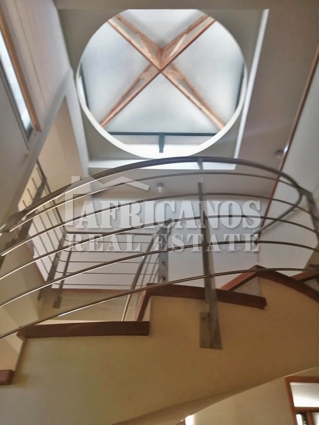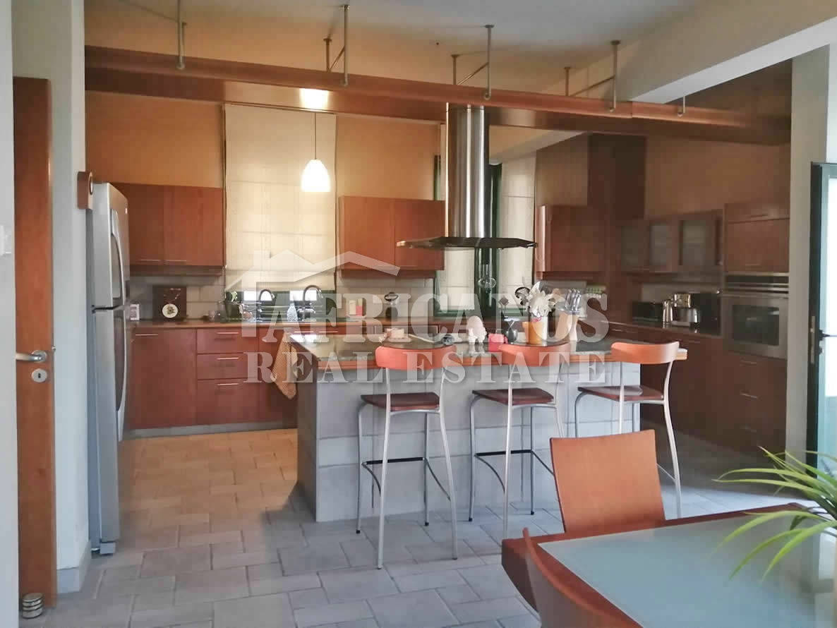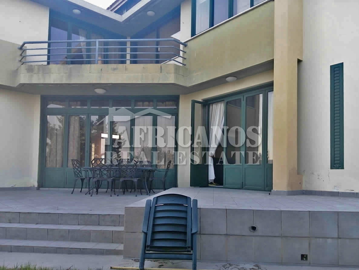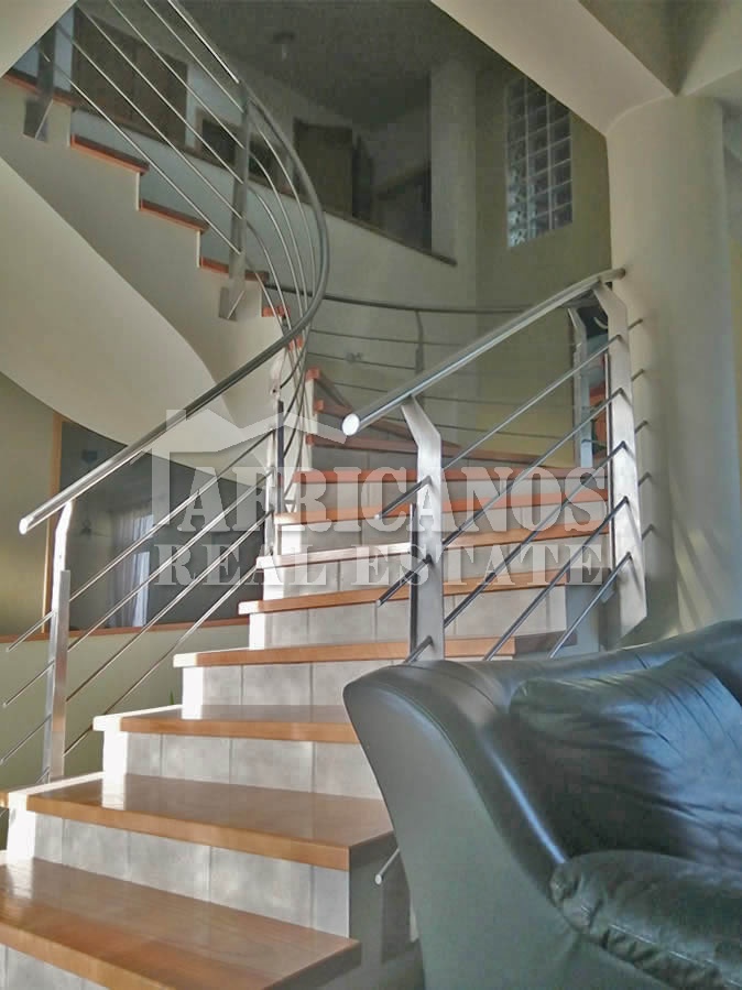 #House for sale in Larnaca. The property consists of 4 bedrooms with large closets, 2 bedrooms also have bay windows with extra storage, separate kitchen with dinning area and large storage closet, large entrance hall which surrounds the stairwell, formal lounge, separate diner, TV room, 3 showers (1 en-suite), 4wc, walking closets in master bedroom, upstairs living room, ample parking, basement storage and machinery room, provision for private pool, large verandas with panoramic views of Larnaca and the harbour, garden, bbq area, A/C, Central Heating.