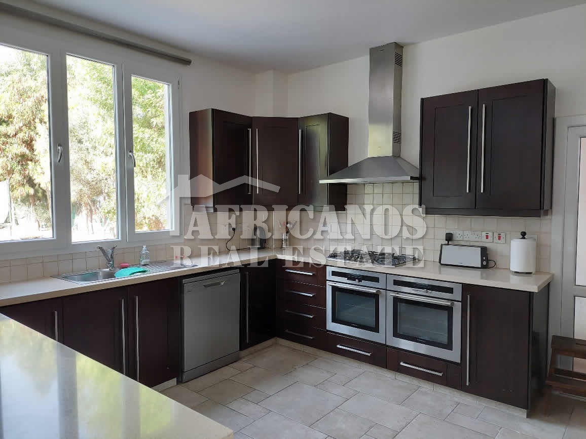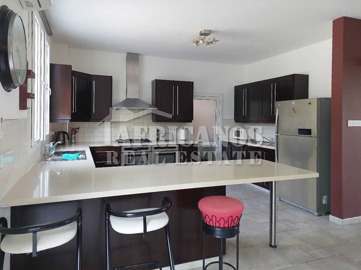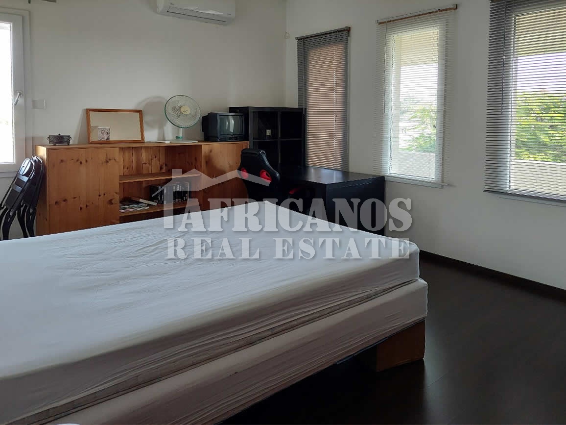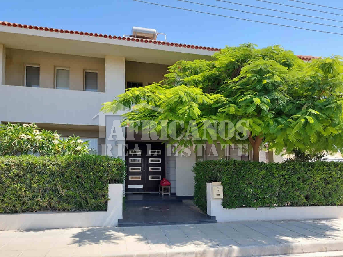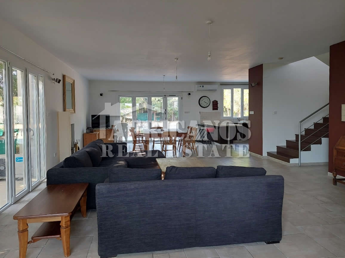 #House for sale in Larnaca. The property consists of 4 bedrooms, study, open plan kitchen, lounge, diner, 2 baths, 1 shower en-suite, 3wc, open and covered parking, storage, kitchen appliances, fire place, A/C