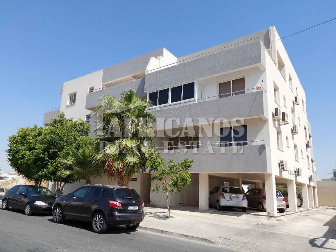 #Apartment for sale in Larnaca. The property consists of 2 bedrooms, open plan kitchen, living room, 1 bath, 1wc, large veranda, storage, kitchen appliances, A/C, covered and uncovered parking (Price includes common charges)