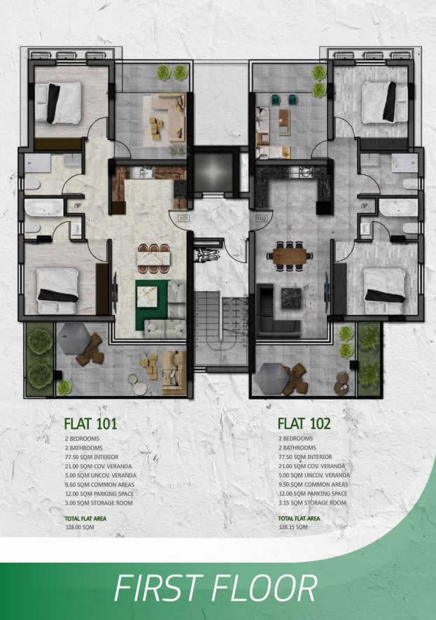 #Apartments for sale in Larnaca. The properties consist of 2 bedrooms, (Provision for a 3rd bedroom), open plan kitchen, 1 shower, 1 bath en-suite, 2wc, 21sq.m. covered verandas, 5sq.m. uncovered veranda, covered parking, storage, private gated community.