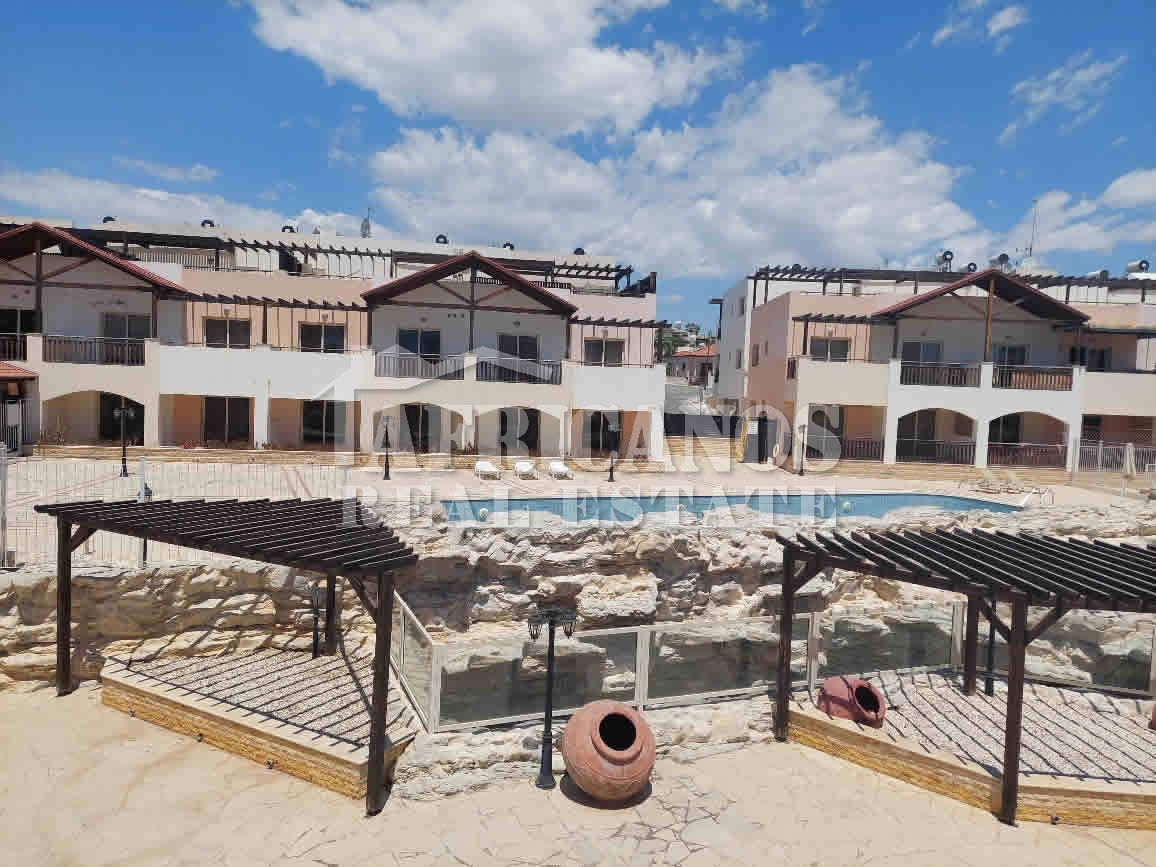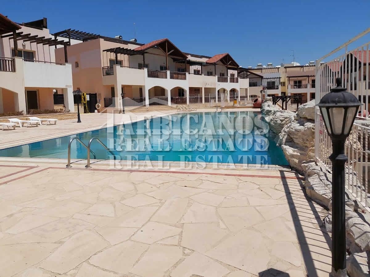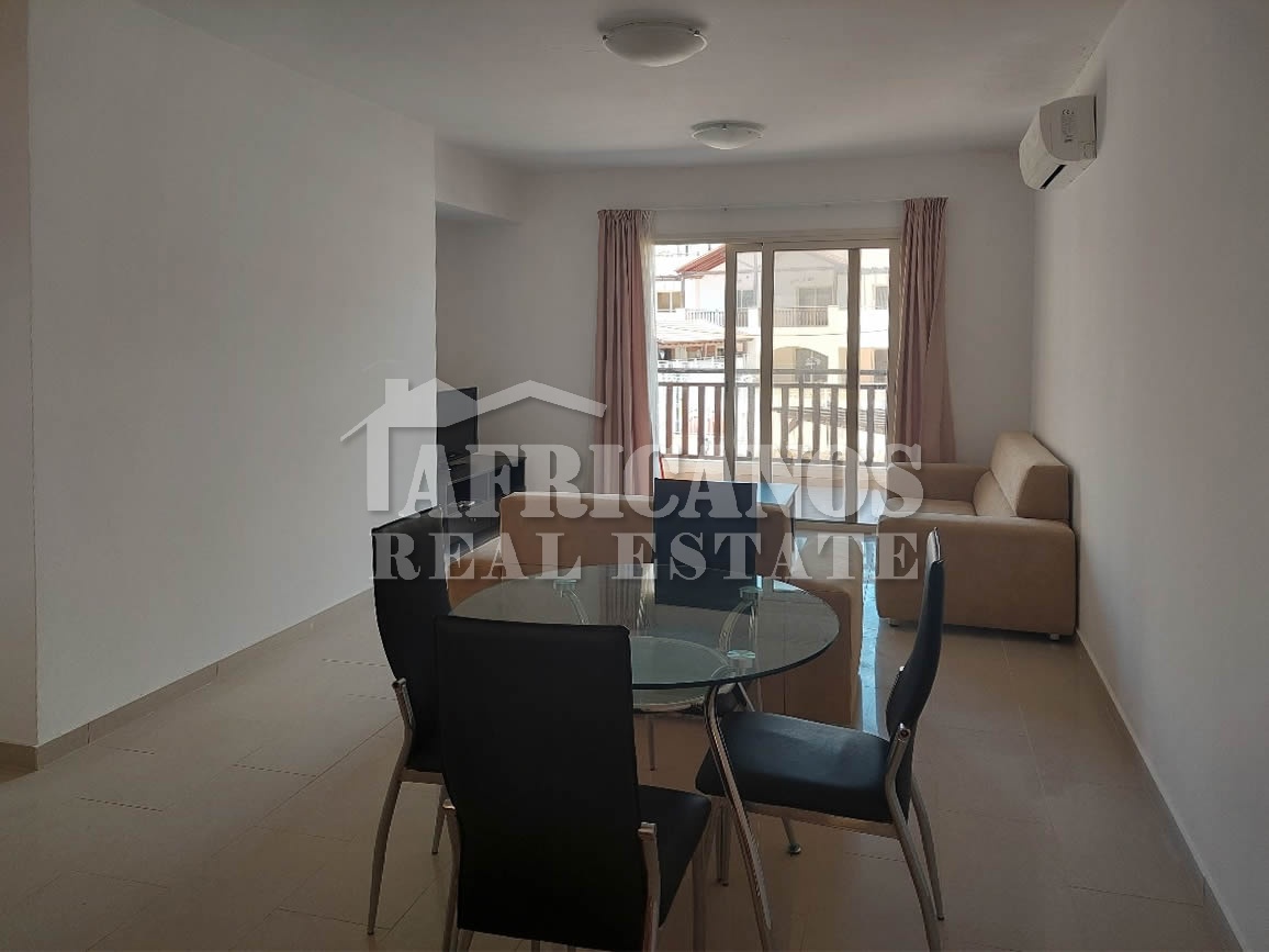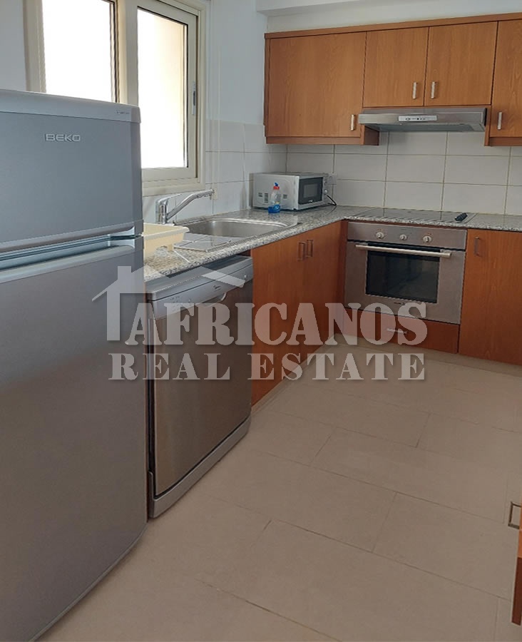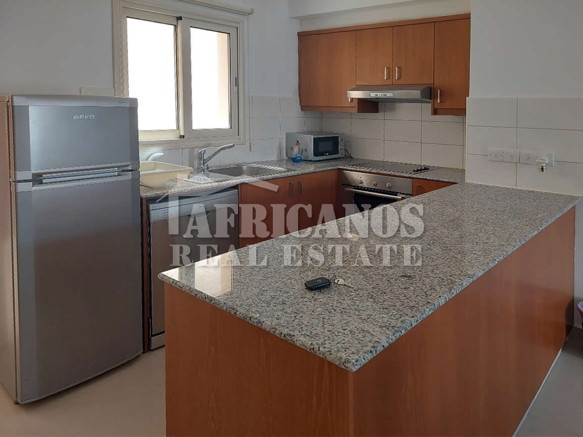 #Apartment for rent in Larnaca. The property consists of 2 bedrooms, 1 bath, 1wc, kitchen appliances, A/C, common pool, covered parking.
