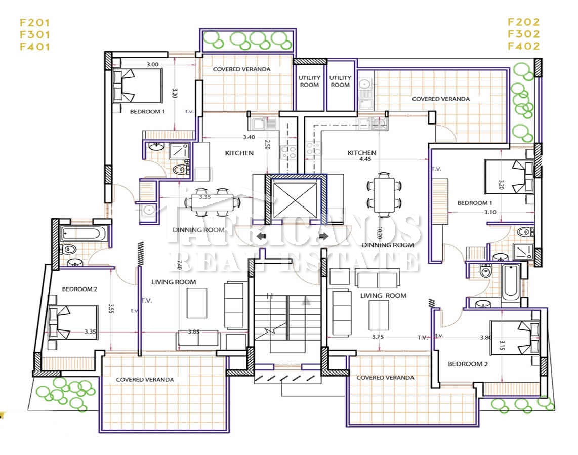 #Apartments for sale in Larnaca. The properties consist of 2 bedrooms, open plan kitchen, living room, 1 bath, 1 shower en-suite, 2wc, 22.45 - 22.5sq.m. covered veranda, (Apartment F102 has a small balcony of 2.15sqlm.), covered parking, storage.