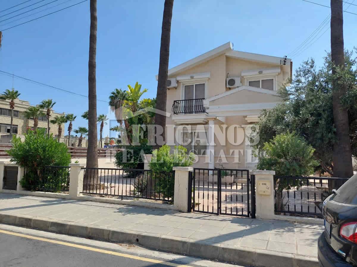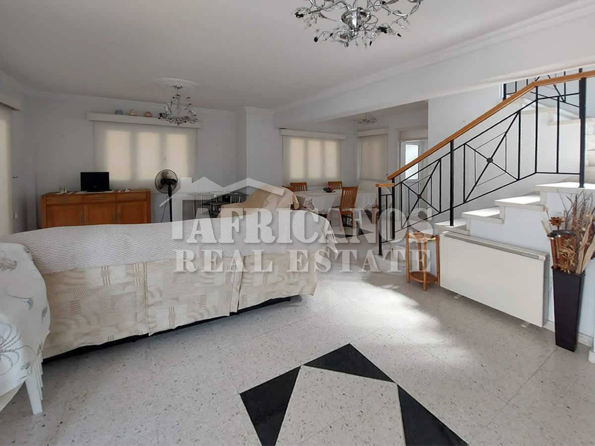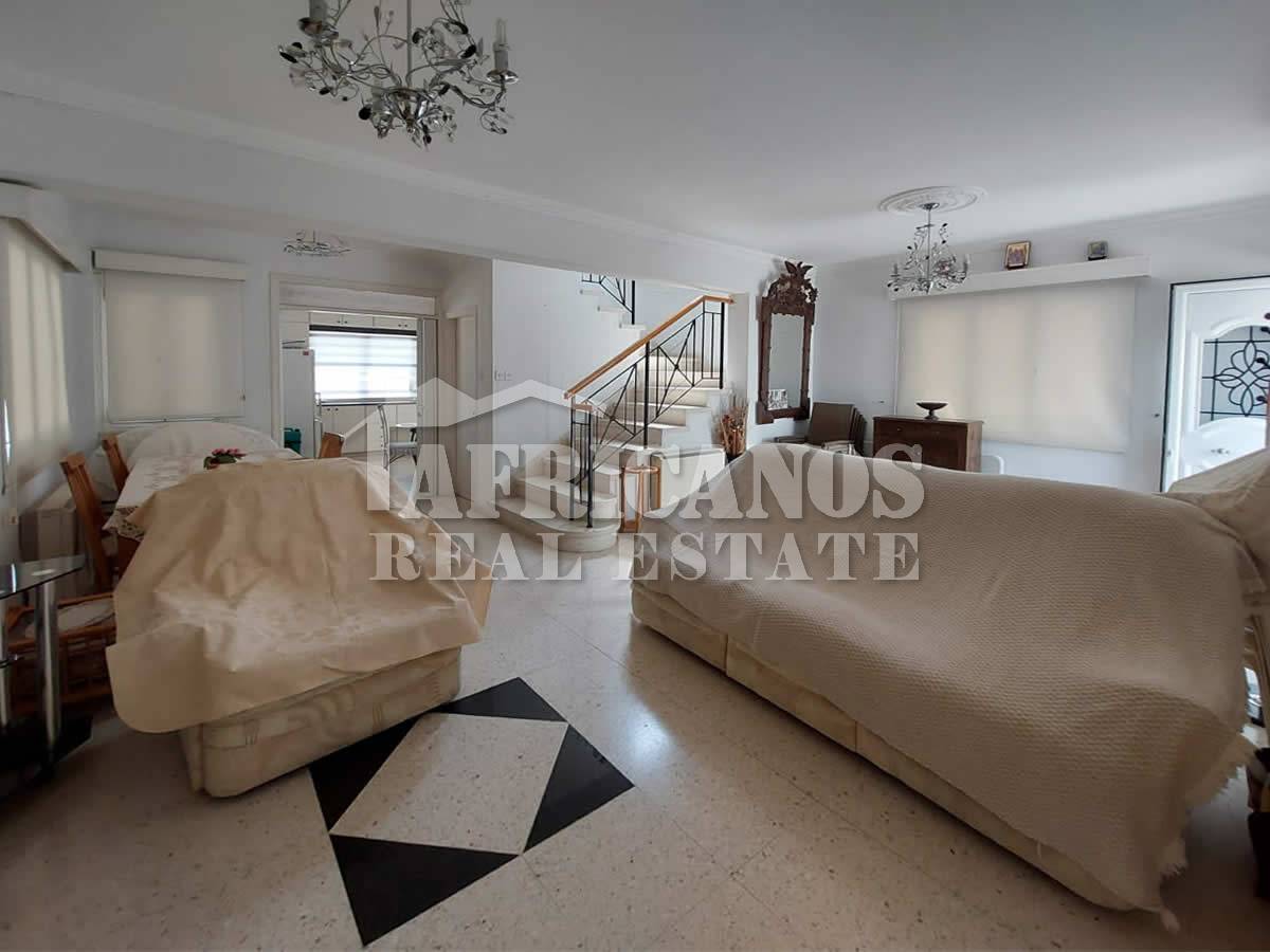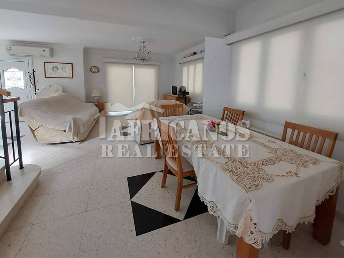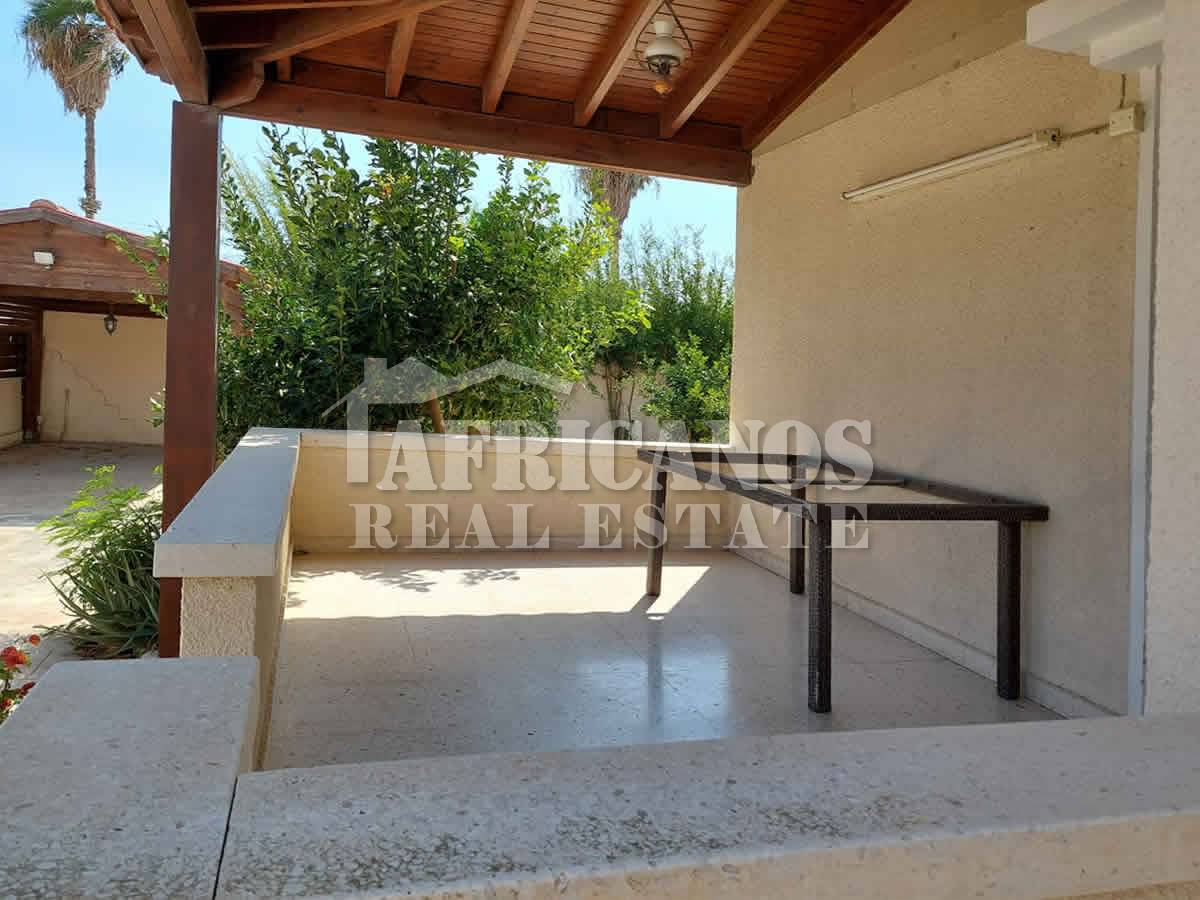#House for sale in Larnaca. The property consists of 3 bedrooms, separate kitchen, lounge, diner, 1 bath, 2wc, open and covered parking, storage, large paved patio, covered verandas, bbq area, outside shower, kitchen appliances, A/C, Central Heating.