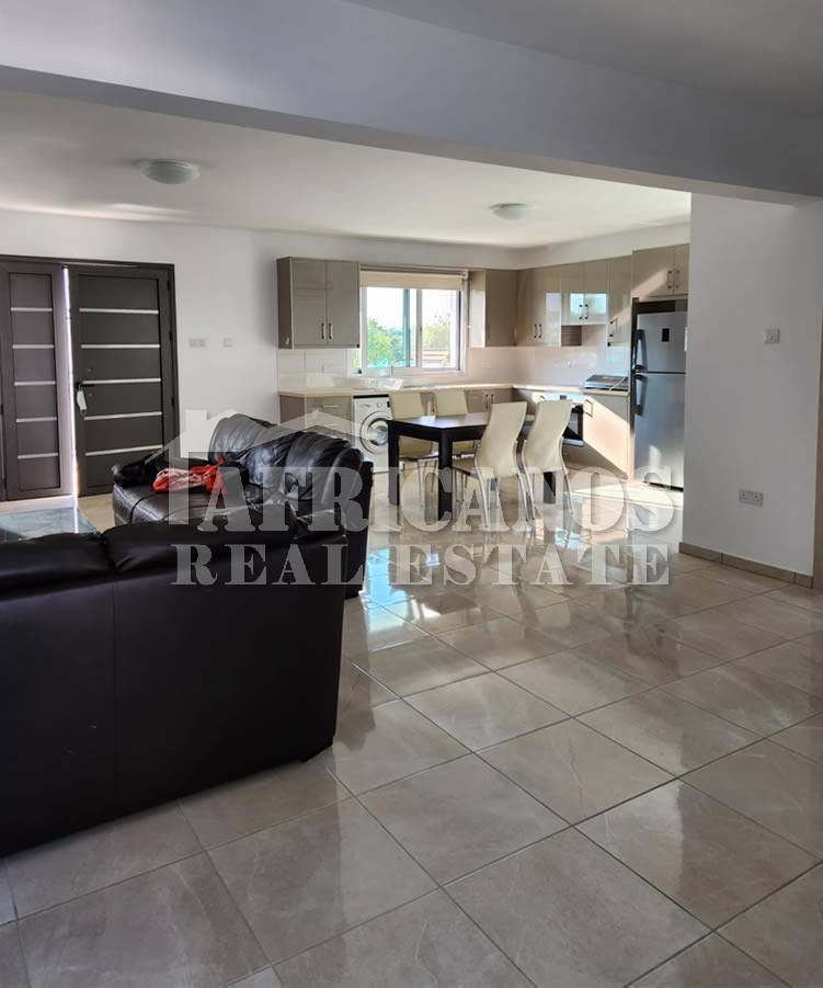 #House for rent in Larnaca. The property consists of 3 bedroom, open plan kitchen, living room, 1 bath, 2 showers, 3w, covered parking, storage, kitchen appliances and A/C.