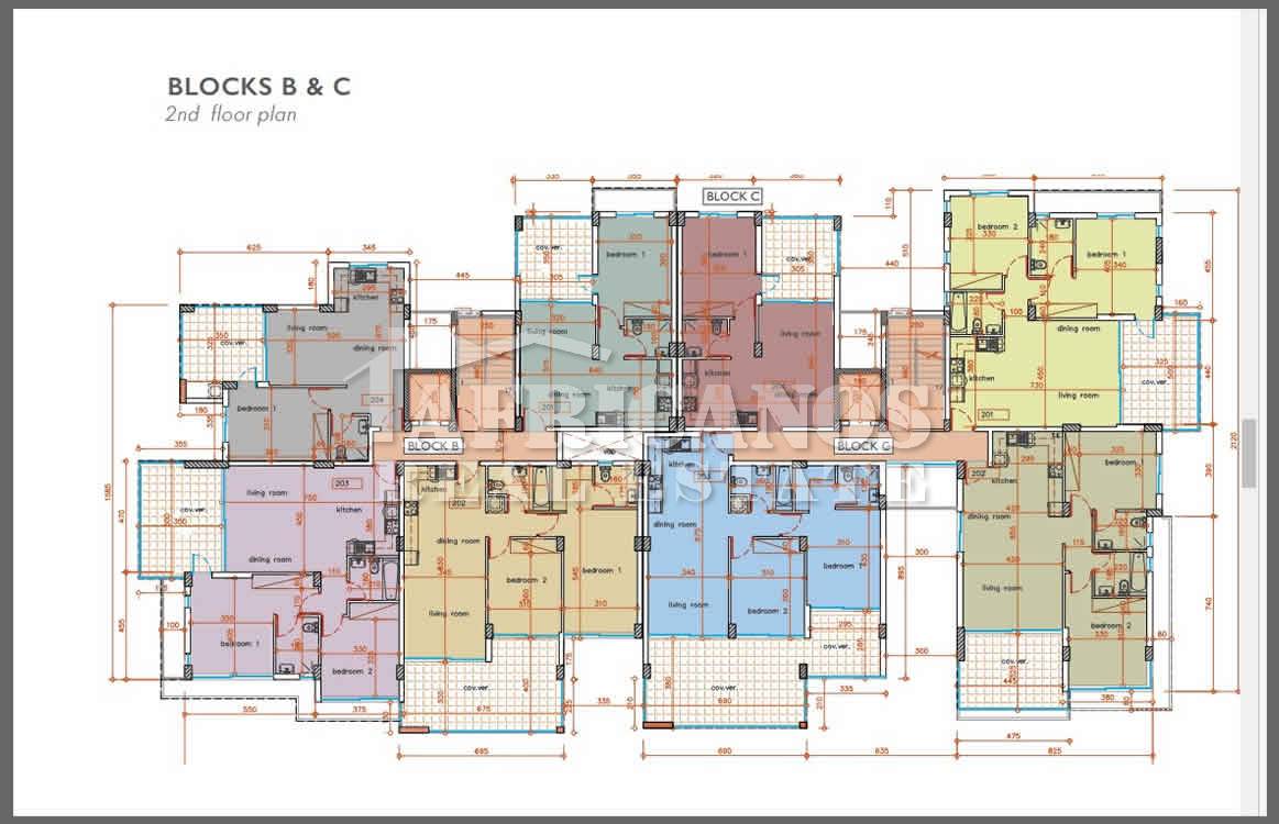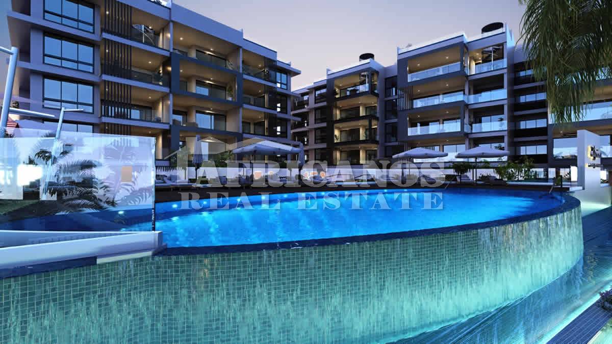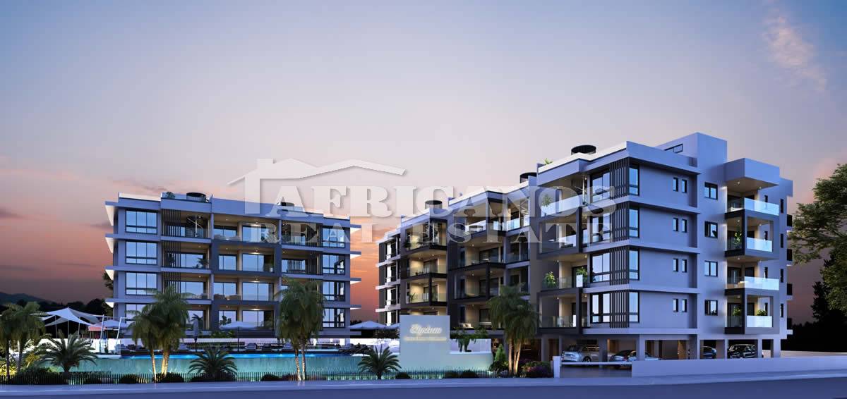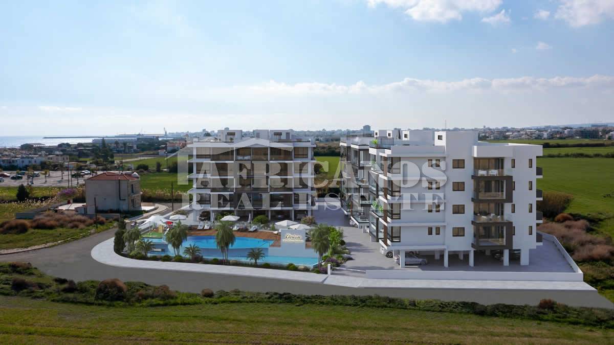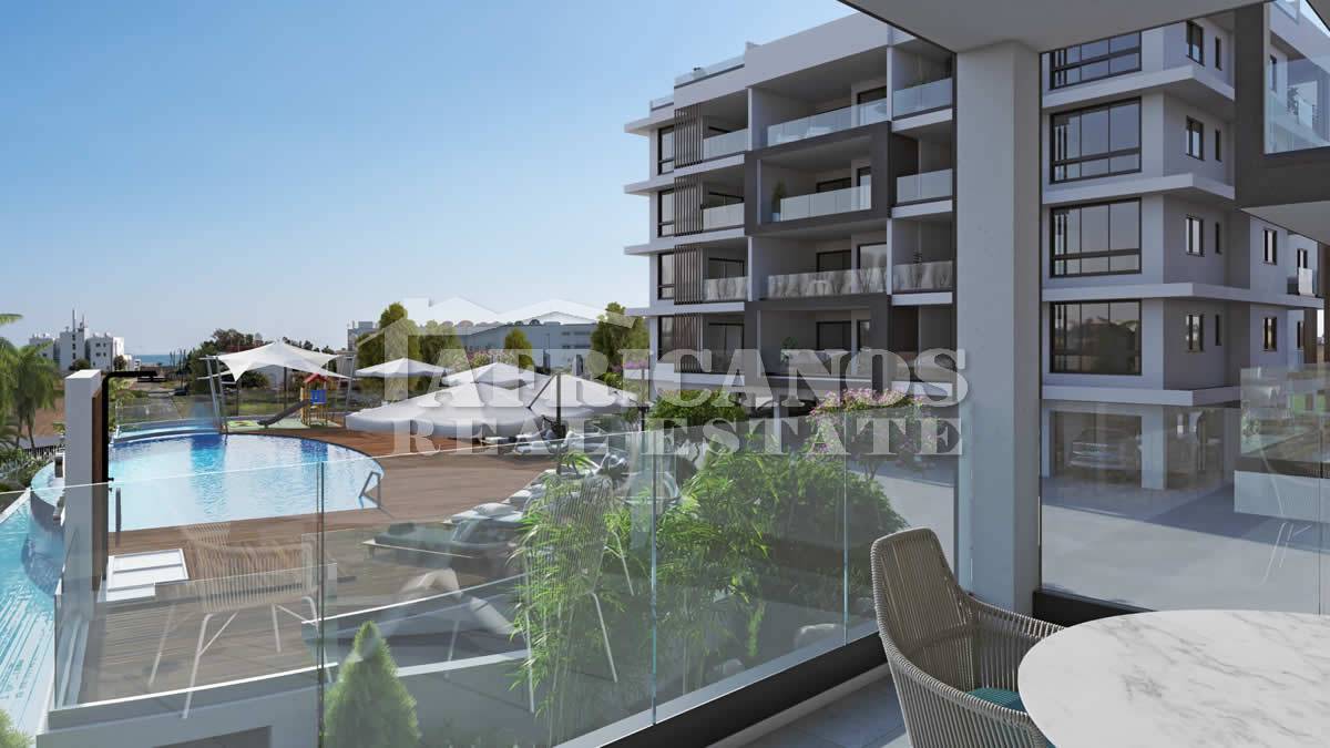 #Apartments for sale in Larnaca. The properties consist of 2 bedrooms, open plan kitchen, living room, 1 bath, 1 shower en-suite 2wc, 16 - 35sq.m. covered verandas, covered parking, storage, gym, kids playground, common pool with changing rooms, ladies and gents wcs.