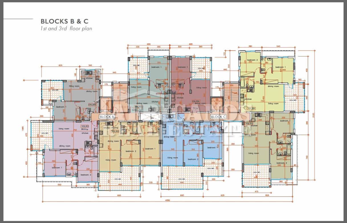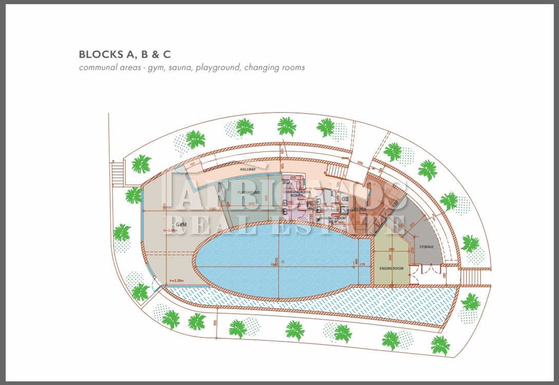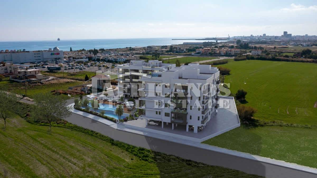 #Apartments for sale in Larnaca. The properties consist of 2 bedrooms, open plan kitchen, living room, 1 bath, 1 shower en-suite 2wc, 16 - 25sq.m. covered verandas, covered parking, storage, gym, kids playground, common pool with changing rooms, ladies and gents wcs.