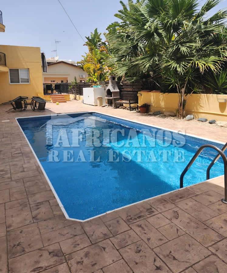 #Apartment for rent in Larnaca. The property consists of 2 bedrooms, open plan kitchen, living room, 1 bath, 1wc, common pool, covered parking, veranda, pressure pump.
