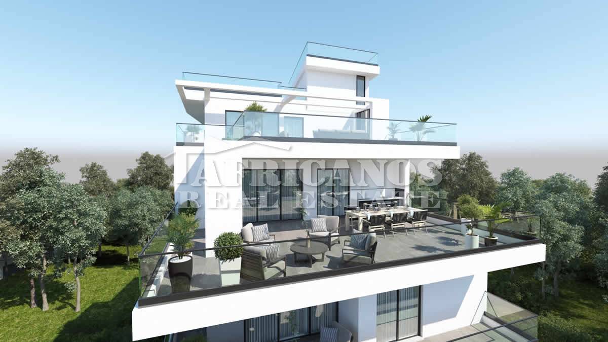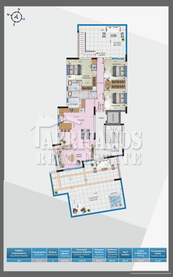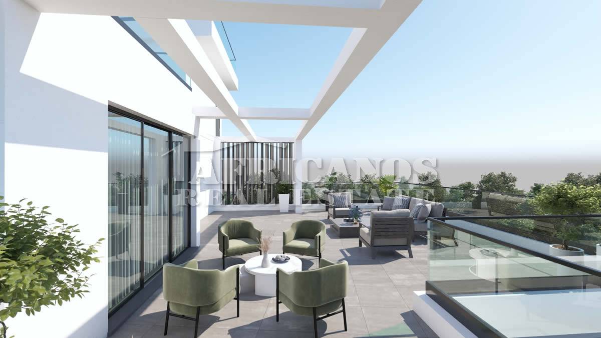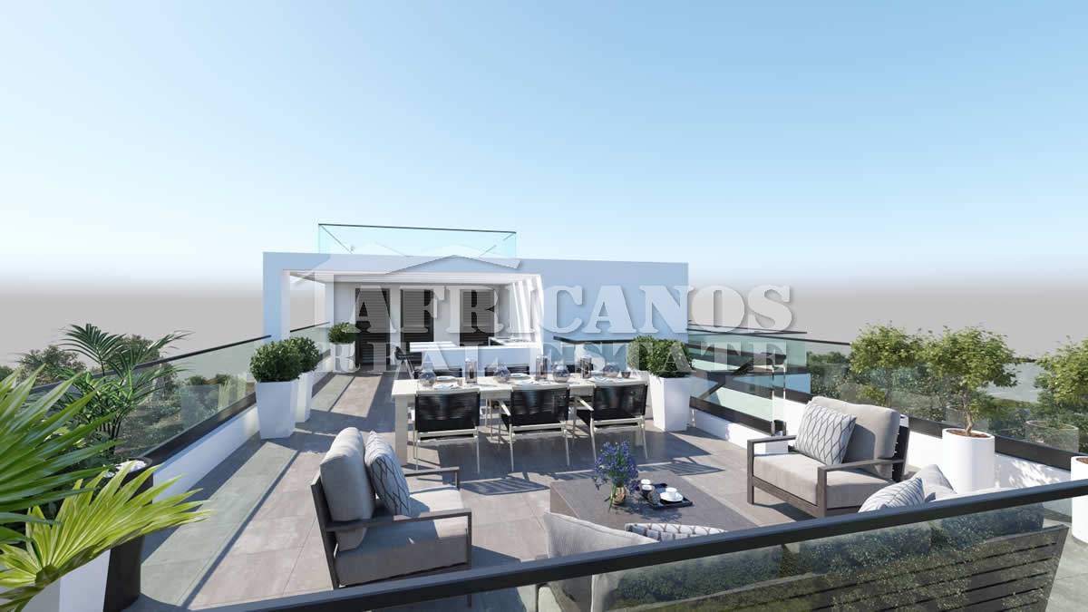 #Apartment for sale in Larnaca, Makenzy area. The property consists of 3 bedrooms, open plan kitchen, living room, 1 bath, 1 shower en-suite, 2wc, (Provision for 2 extra bedrooms, shower and wc on the roof) 36sq.m. covered verandas, 69sq.m. uncovered verandas, 90sq.m. roof garden with bbq area, storage, covered parking.