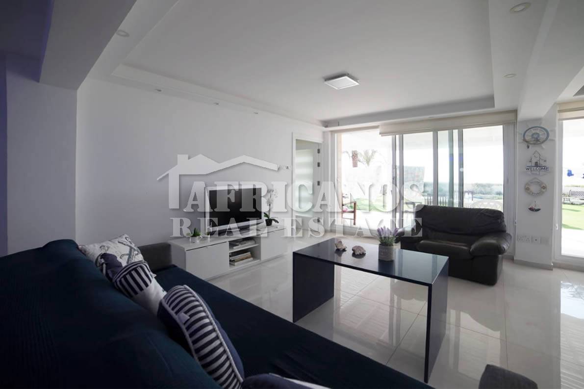 Beach front, fully furnished 3 bedroom, house on the ground floor, for rent in Pervolia area, just 6 meters from the beach Front,