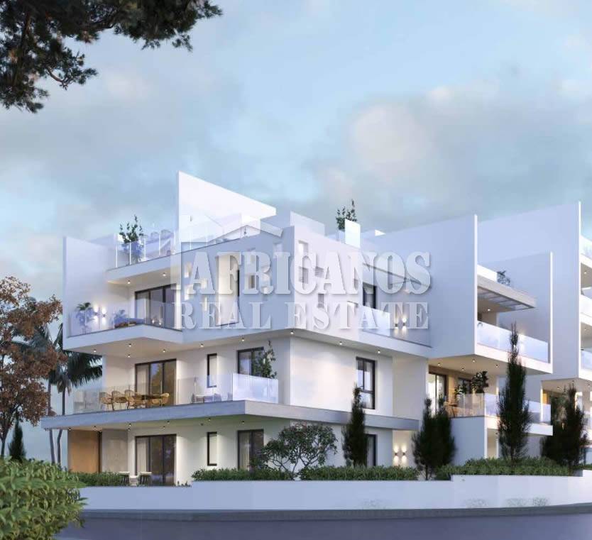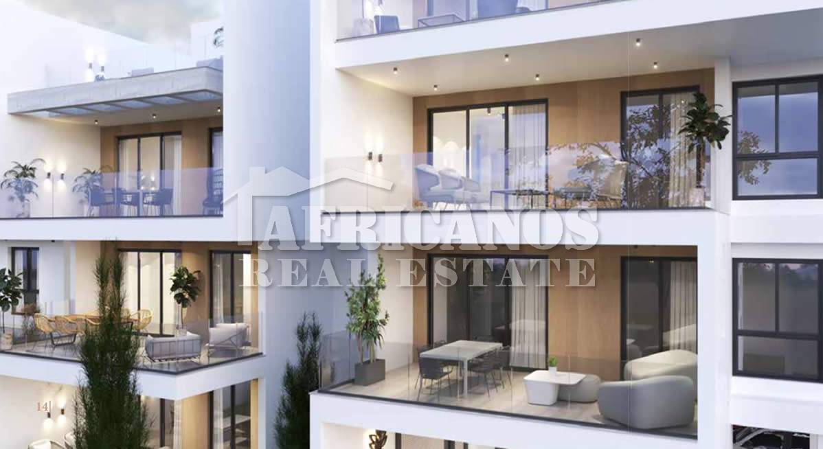 #Ground floor apartment for sale in Larnaca. The property consists of 2 bedrooms, open plan kitchen, living room, 1 bath, 1 shower en-suite, 2wc, 29sq.m. covered verandas, 64sq.m. yard, covered parking, storage, provision for A/C. Construction begins September 2024.