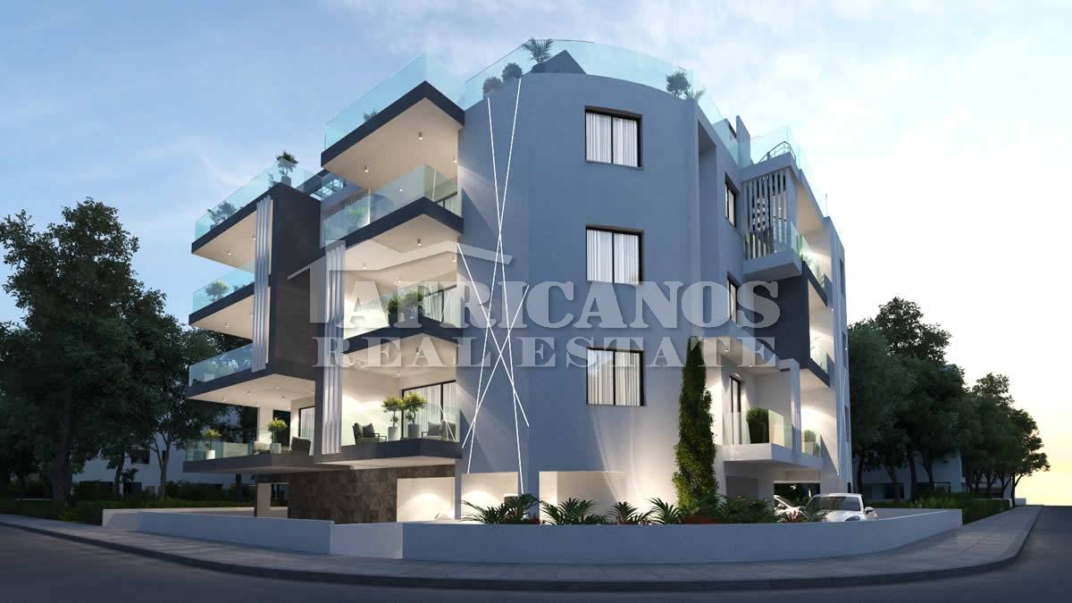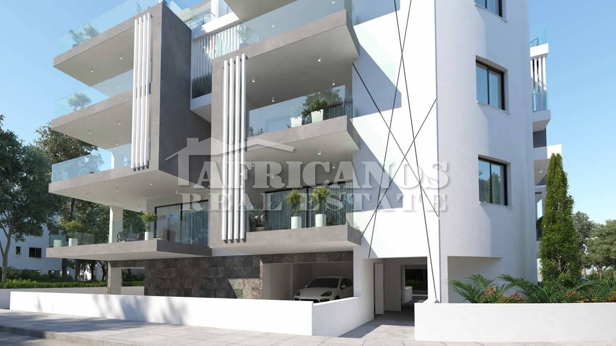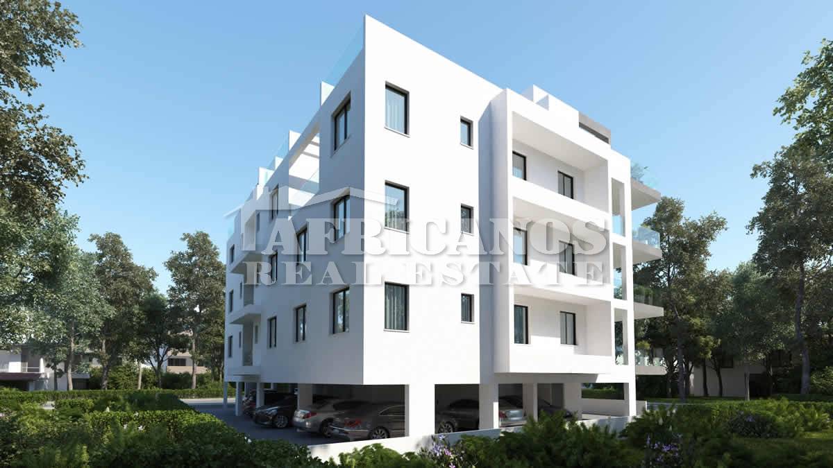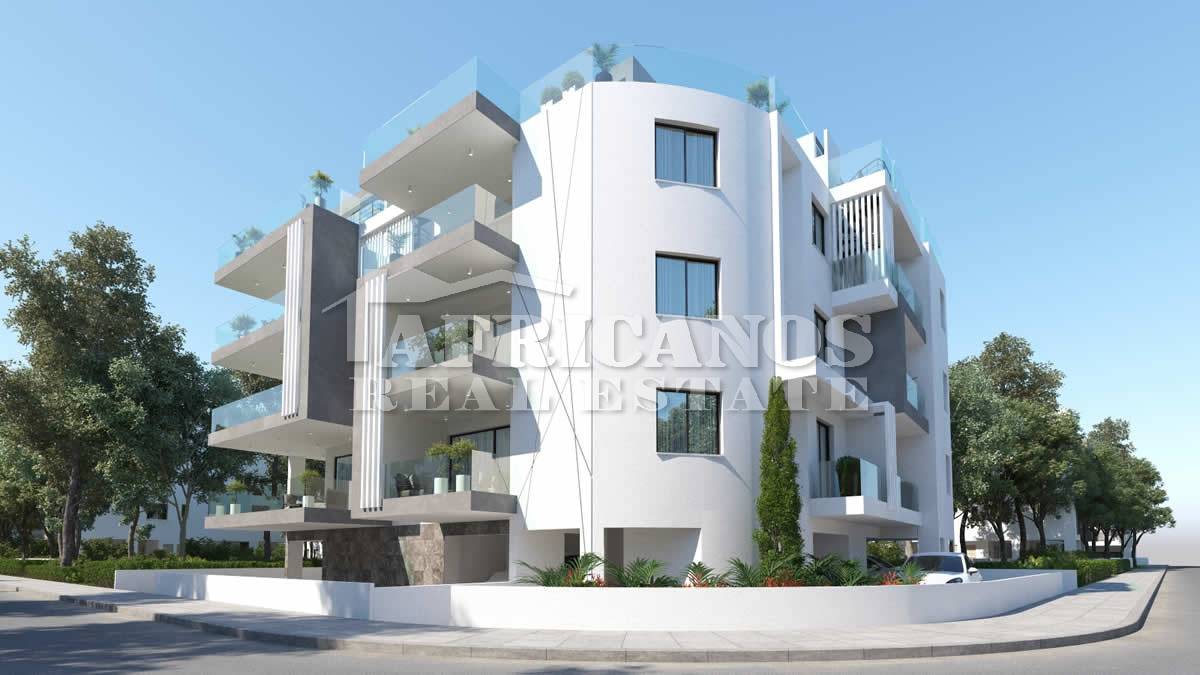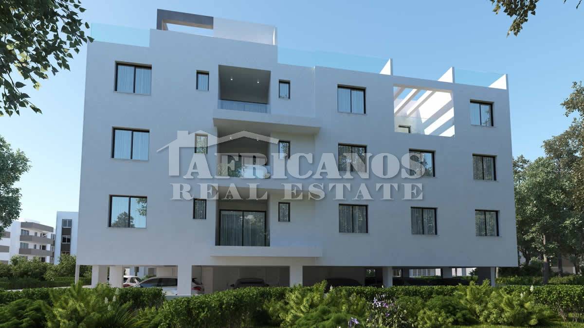#Apartment for sale in Larnaca. The property consists of 2 bedrooms, open plan kitchen, living room, 1 bath, 1 shower en-suite, 2wc, 20sq.m. covered verandas, covered parking, storage, provision for A/C.
