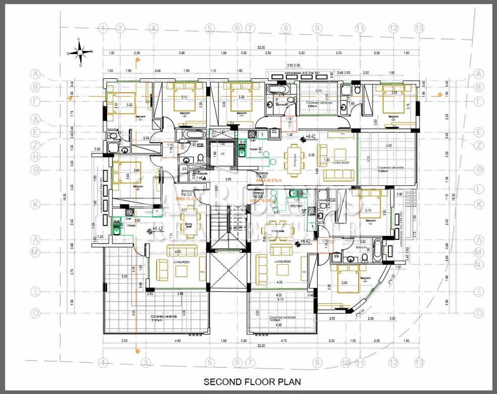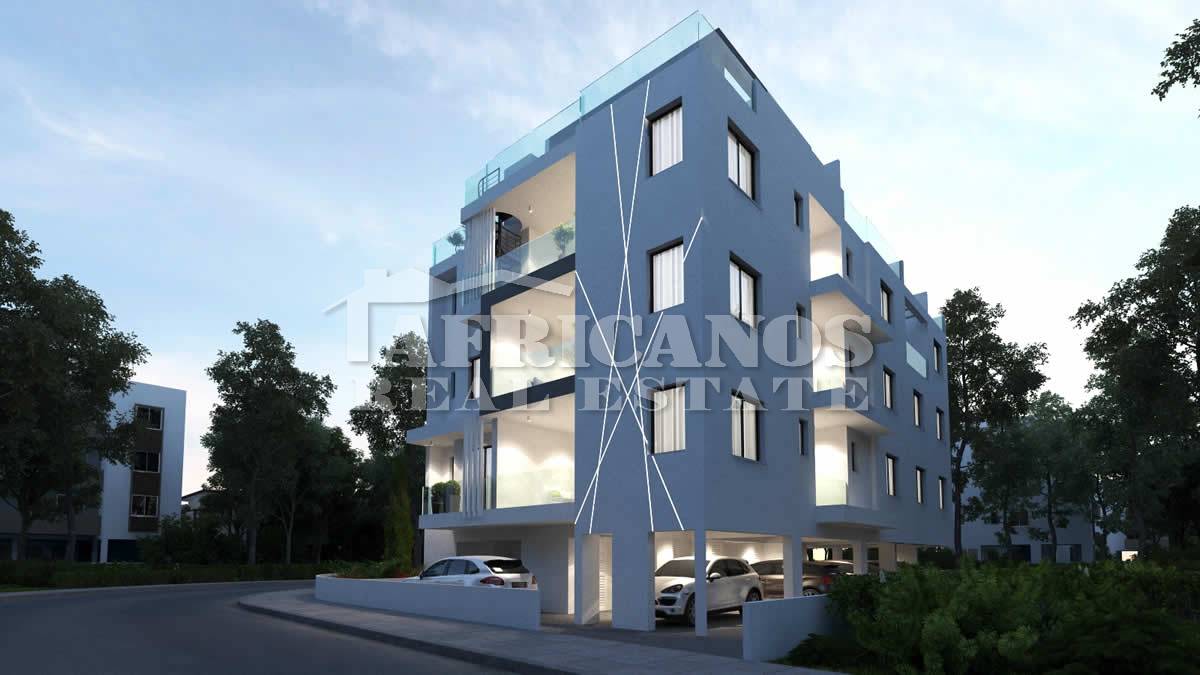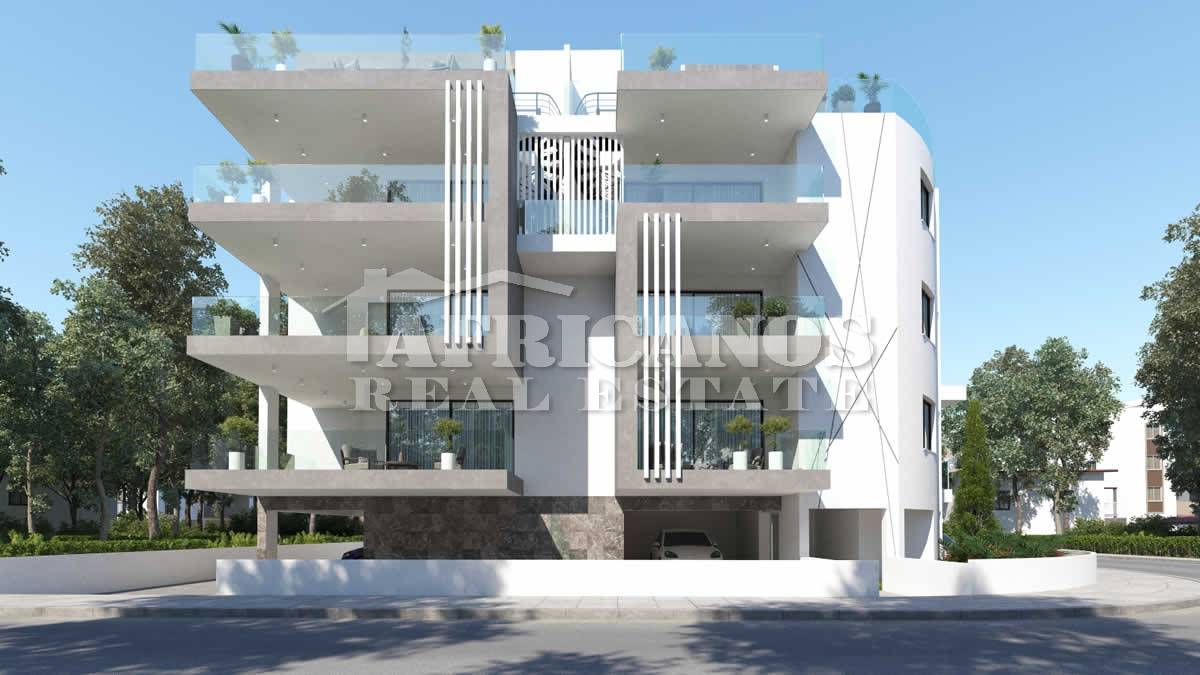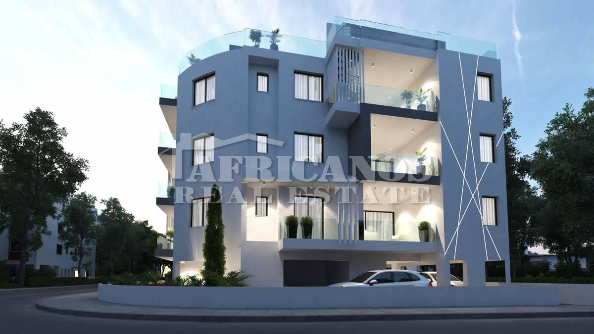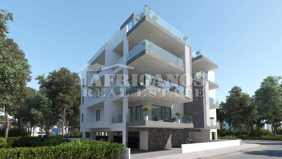 #Apartment for sale in Larnaca. The property consists of 2 bedrooms, open plan kitchen, living room, 1 bath, 1 shower en-suite, 2wc, 20sq.m. covered verandas, covered parking, storage, provision for A/C.