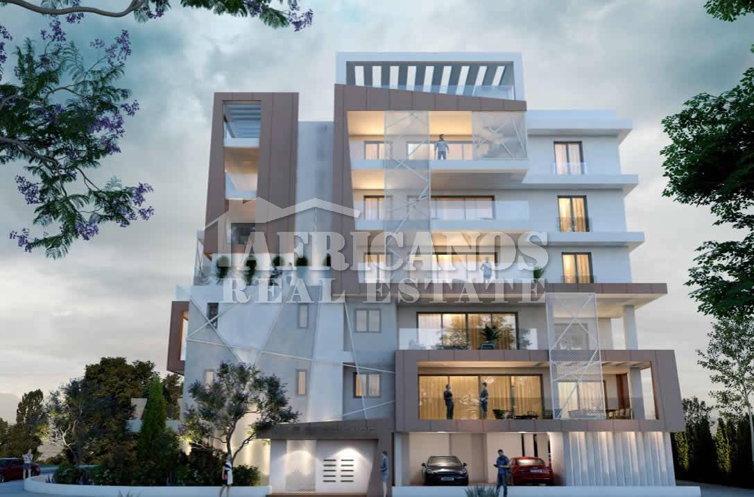 #Apartment for sale in Larnaca. The property consists of 2 bedrooms, open plan kitchen, living room, 1 shower, 1 shower en-suite, 2wc, covered parking, storage, 22sq.m. covered veranda, 32.6sq.m. roof garden.