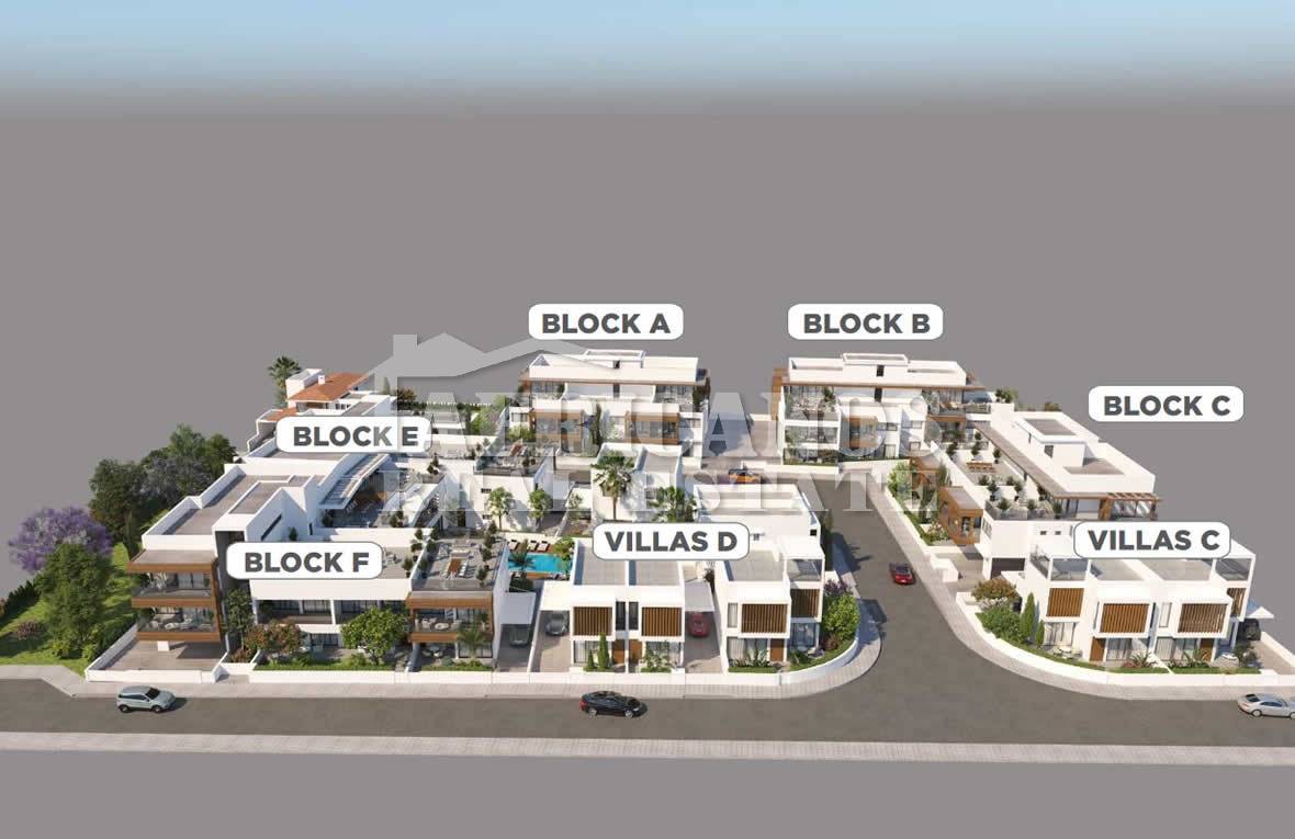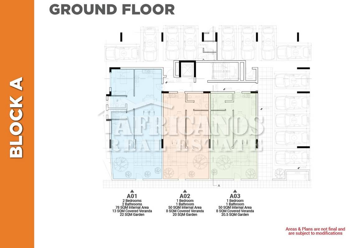 #Apartments for sale in Larnaca. The properties consist of 1 bedroom, open plan kitchen, living room, 1 bath, 1wc, 8 - 10sq.m. covered verandas, 18.5 - 20sq.m. garden, common pool, provision for A/C, parking.