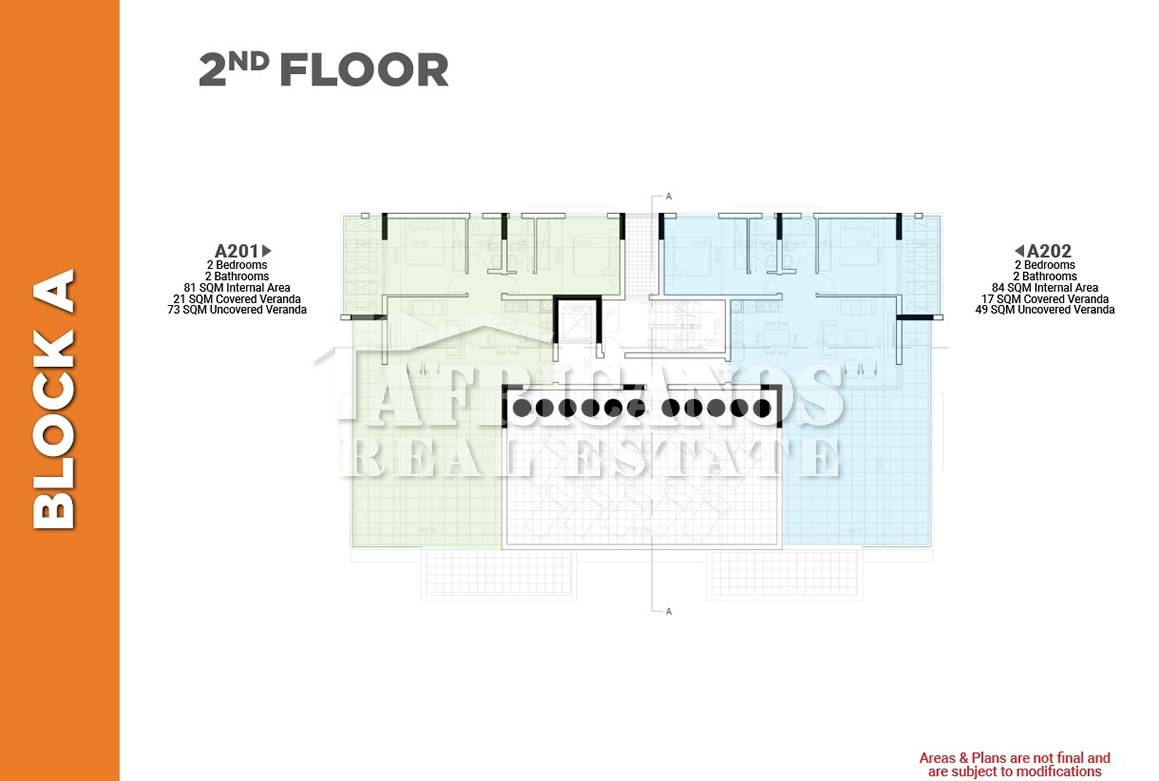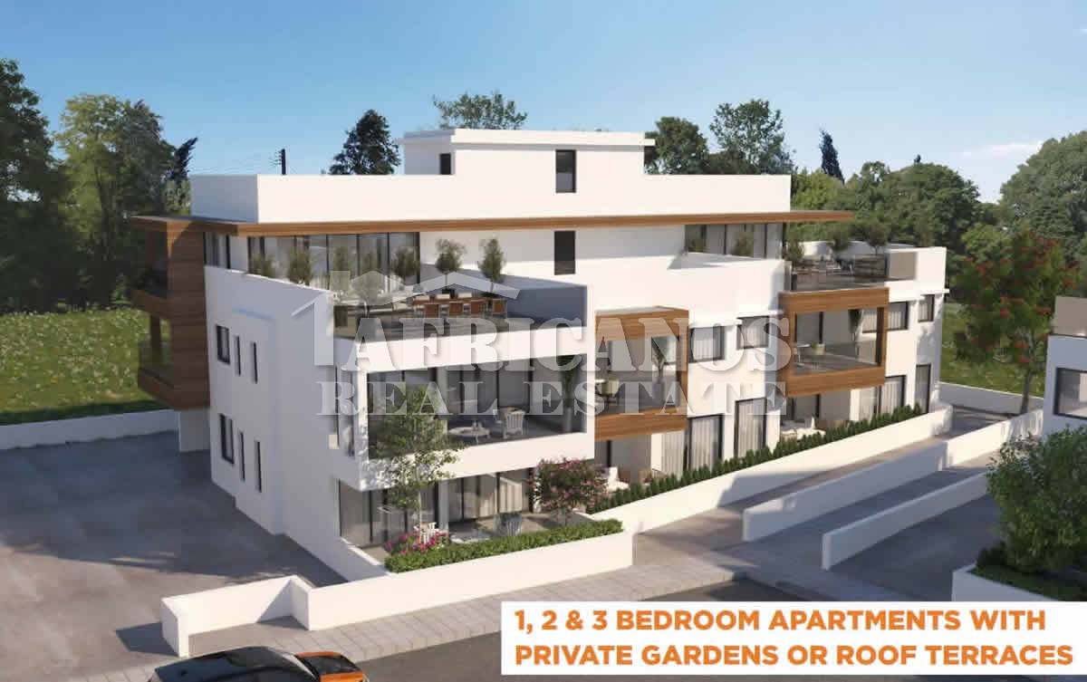 #Apartments for sale in Larnaca. The properties consist of 2 bedrooms, open plan kitchen, living room, 1 bath, 1 shower en-suite, 2wc, 13 - 18sq.m. covered verandas, common pool, provision for A/C, parking.