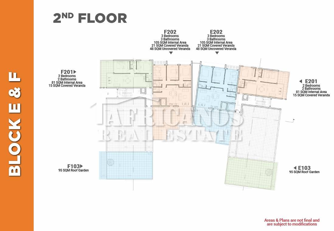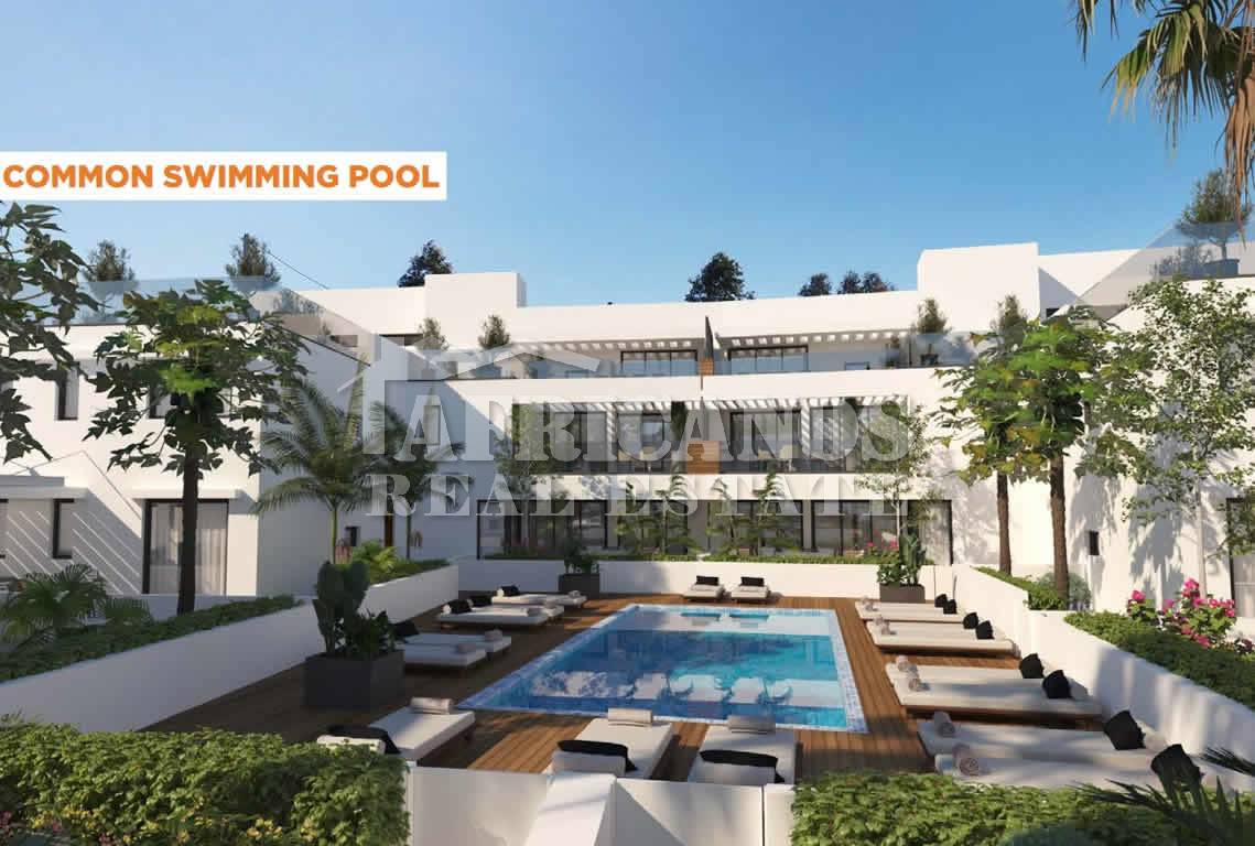 #Apartments for sale in Larnaca. The properties consist of 3 bedrooms, open plan kitchen, living room, 1 bath, 1 shower en-suite, 3wc, 21sq.m. covered verandas, 48sq.m. uncovered verandas, common pool, provision for A/C, parking.