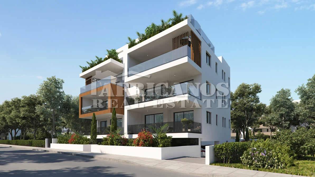 #Apartment for sale in Livadia area. The property consists of 2 bedrooms, open plan kitchen, living room, 1 bath, 1 shower en-suite, 2wc, 19.7sq.m. covered verandas, covered parking, storage.