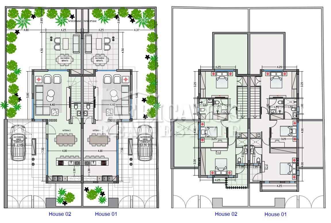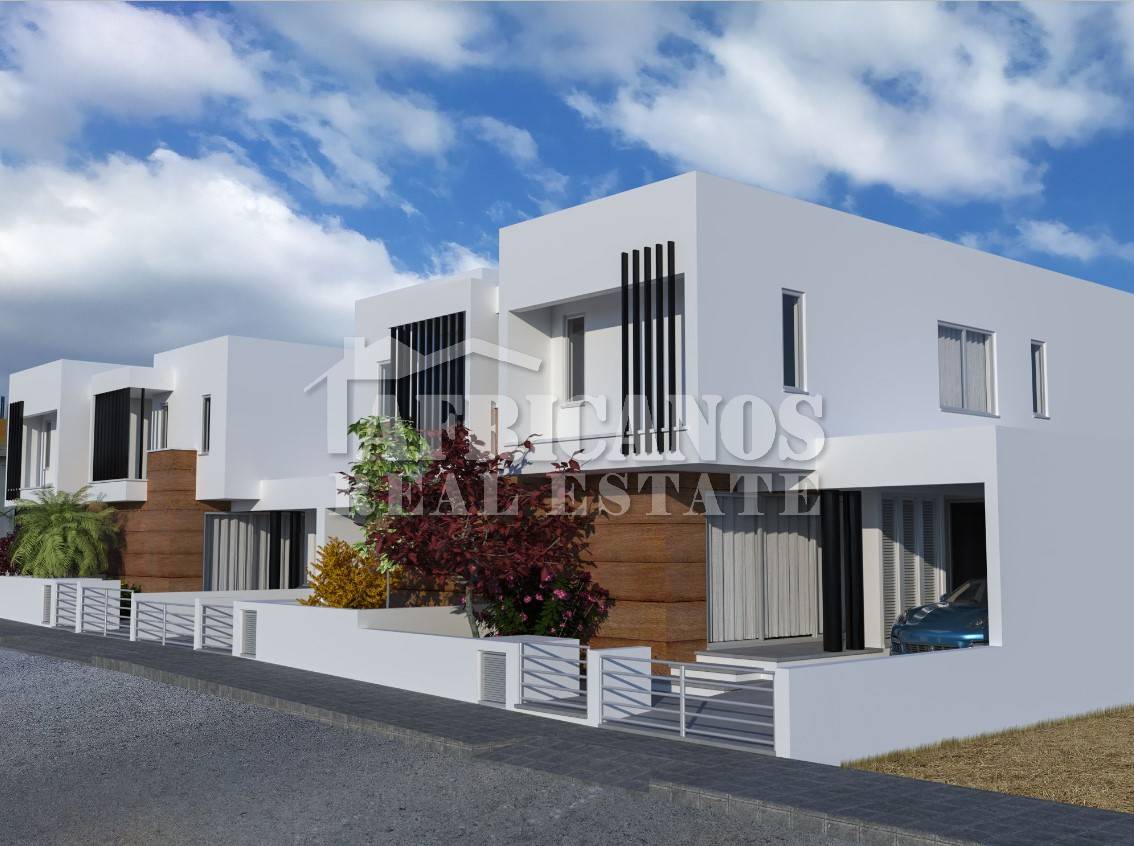#House for sale in Larnaca, Kiti area. The property consists of 3 bedrooms, open plan kitchen, living room, 3 showers en-suite, 4wc, 20sq.m. rear covered veranda, 13sq.m. front patio, bbq area, wash area, covered parking, storage, provision for A/C.