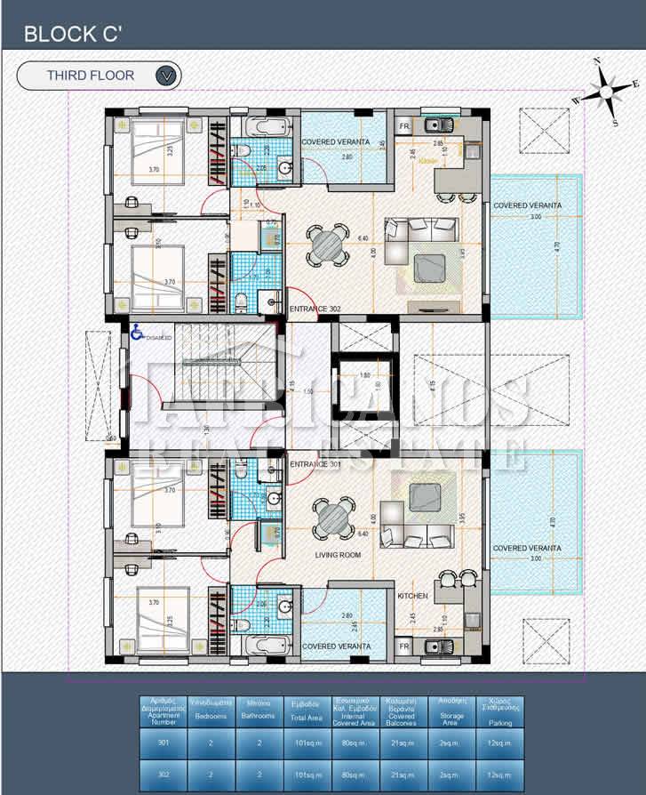 #Apartment for sale in Livadia. The property consists of 2 bedrooms, open plan kitchen, living room, 1 bath 1 shower en-suite, 2wc, covered parking, storage, 21sq.m. covered veranda.