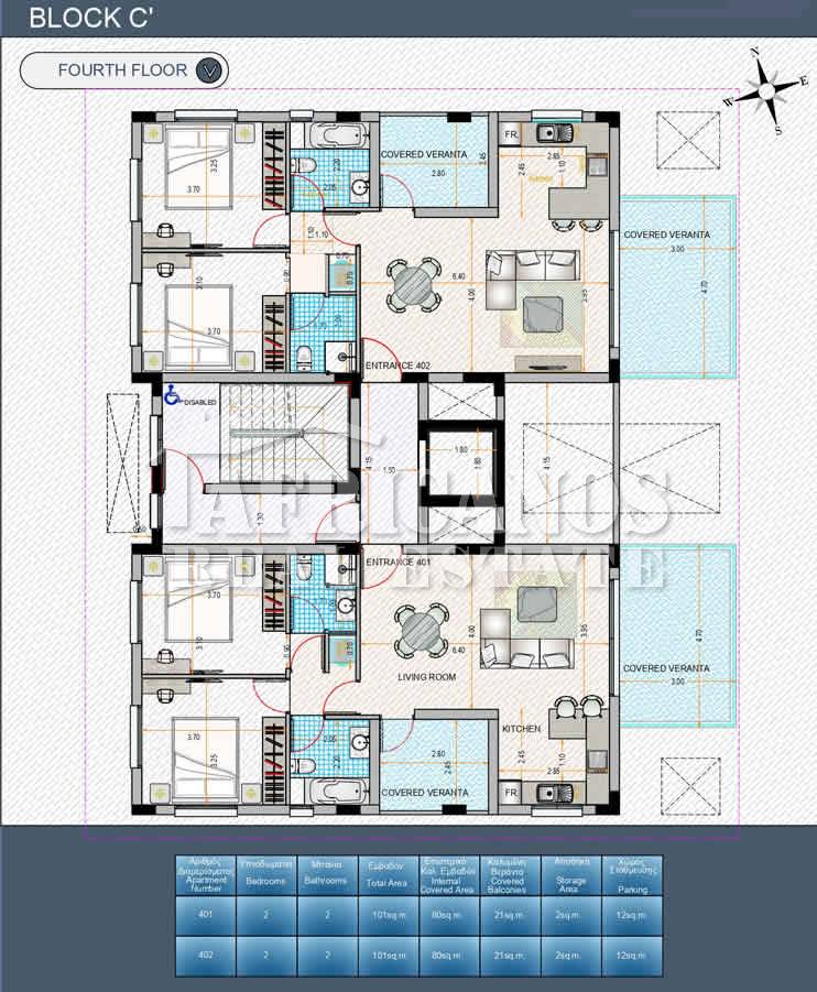 #Apartment for sale in Livadia. The property consists of 2 bedrooms, open plan kitchen, living room, 1 bath 1 shower en-suite, 2wc, covered parking, storage, 21sq.m. covered veranda.
