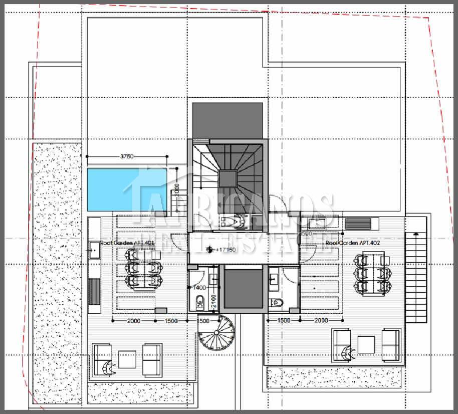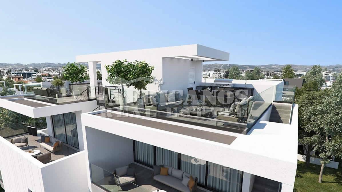 #Apartment for sale in Larnaca. The property consists of 2 bedrooms, open plan kitchen, living room, 1 shower, 1 shower en-suite, 2wc, 21.6q.m. covered veranda, 48.7sq.m. roof garden, (provision for bbq area and wc on the roof), covered parking, storage. (Furniture, A/C and electrical appliances are included in the price) Construction will begin soon.