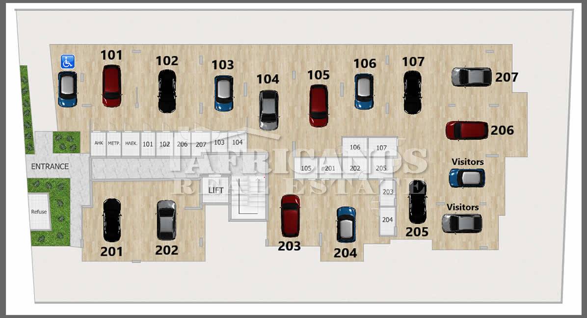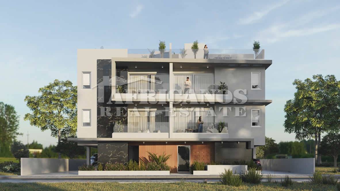 #Apartments for sale in Larnaca, Oroklini area. The properties consists of 2 bedrooms, open plan kitchen living room, 1 bath, 1 shower en-suite, 2wc, 8-9sq.m. covered veranda, 40sq.m. roof garden, covered parking, storage, granite worktops, double glazing, intercom system. Construction will begin in early 2025.