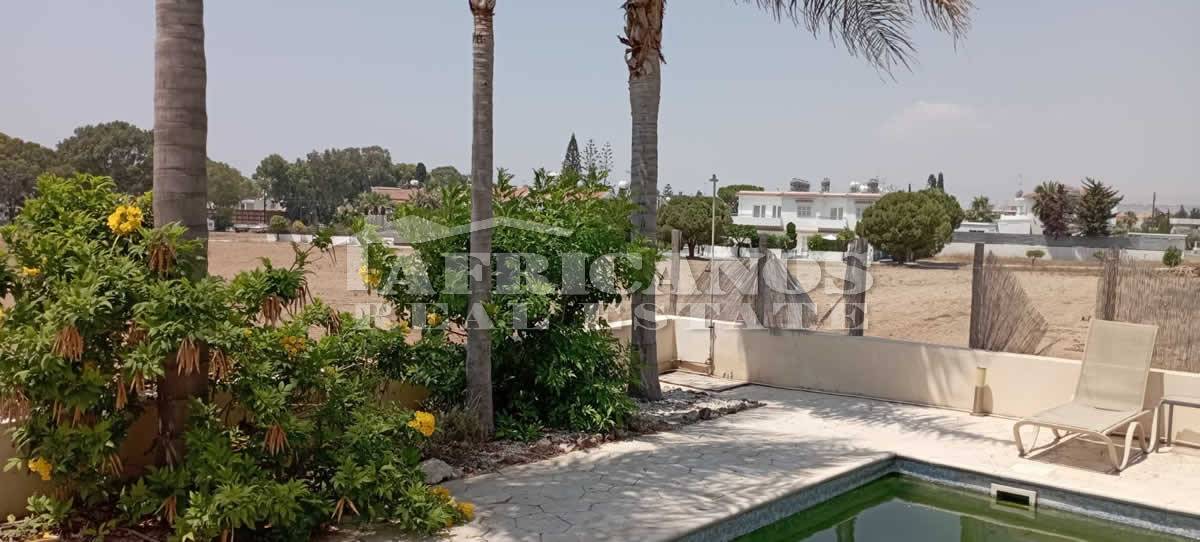 #House for rent in Larnaca, Pyla tourist. The property consists of 3 bedrooms, open plan kitchen, living room, 1 bath, 1 shower en-suite, 3wc, private pool, large garden, covered veranda, bbq area with clay oven, A/C, Central Heating (Price includes pool maintenance)