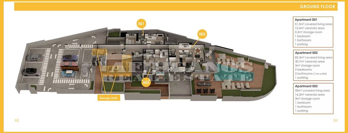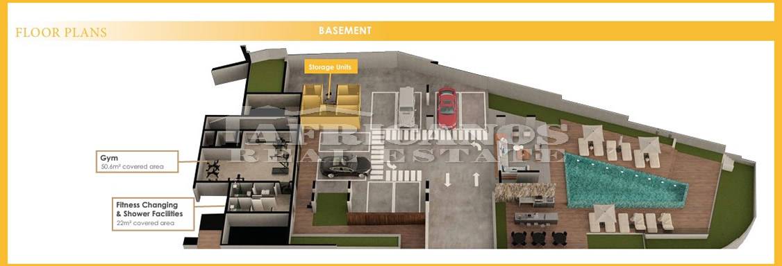 #Apartment for sale in Larnaca, Oroklini area. The property consists of 1 bedroom, open plan kitchen, living room, 1 shower, 1wc, common pool, bbq area, covered parking, 12.4sq.m. covered verandas. (The basement consists of 50.6sq.m. gym, fitness changing and shower facilities and enclosed parking) Class A Energy Sufficiency.