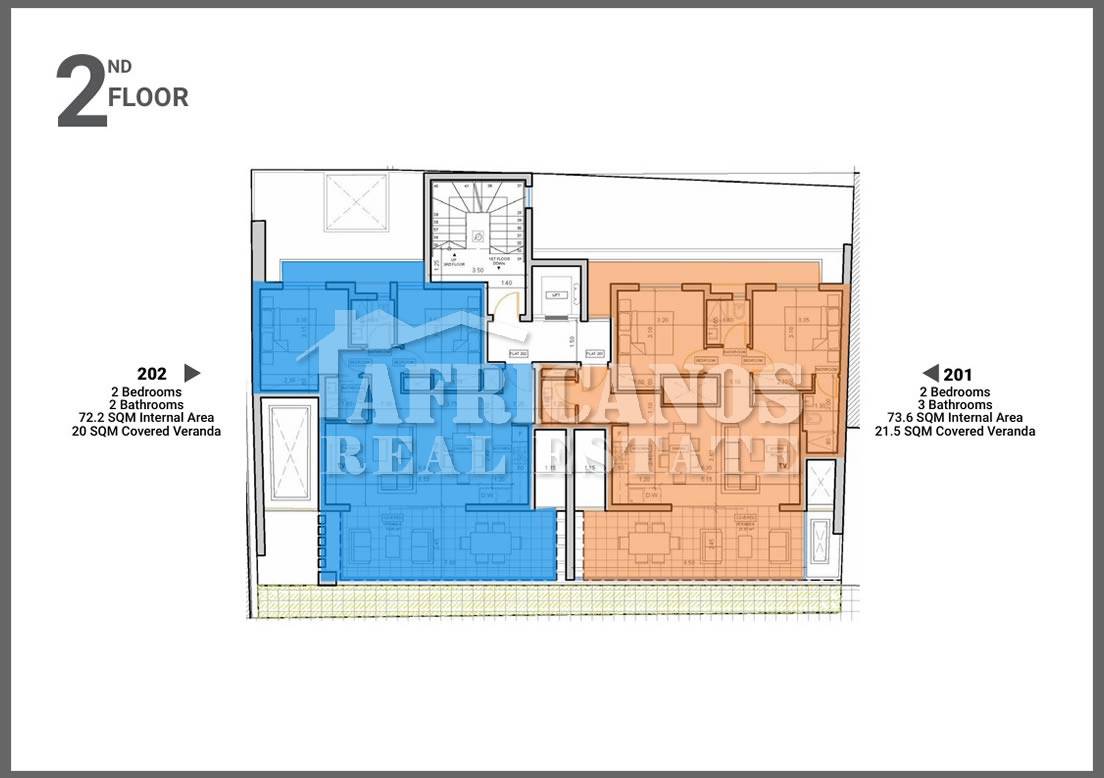 #Apartments for sale in Larnaca centre. The properties consist of 2 bedrooms, open plan kitchen, living room, 1 shower, 1 shower en-suite, 2wc, 20 - 21.5sq.m. covered veranda, covered parking.