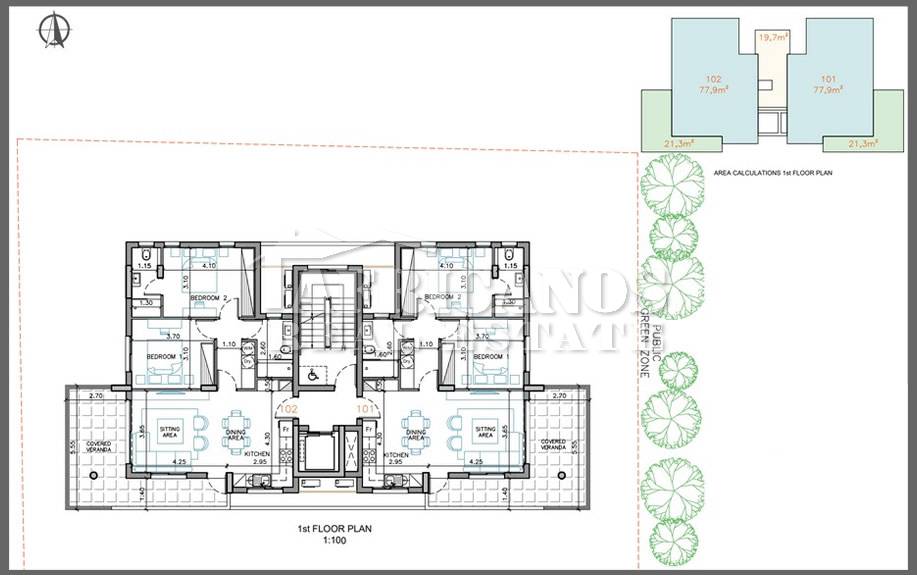 #Apartments for sale in Larnaca. The properties consist of 2 bedrooms, open plan kitchen, living room, 1 shower, 1 shower en-suite, 2wc, covered parking, storage, 21sq.m. covered verandas. Class A Energy Sufficiency.