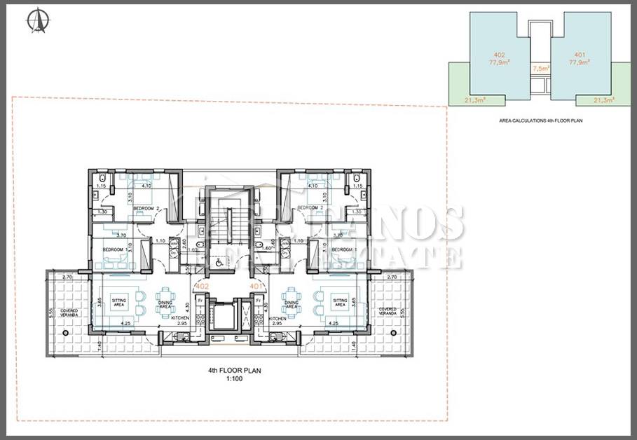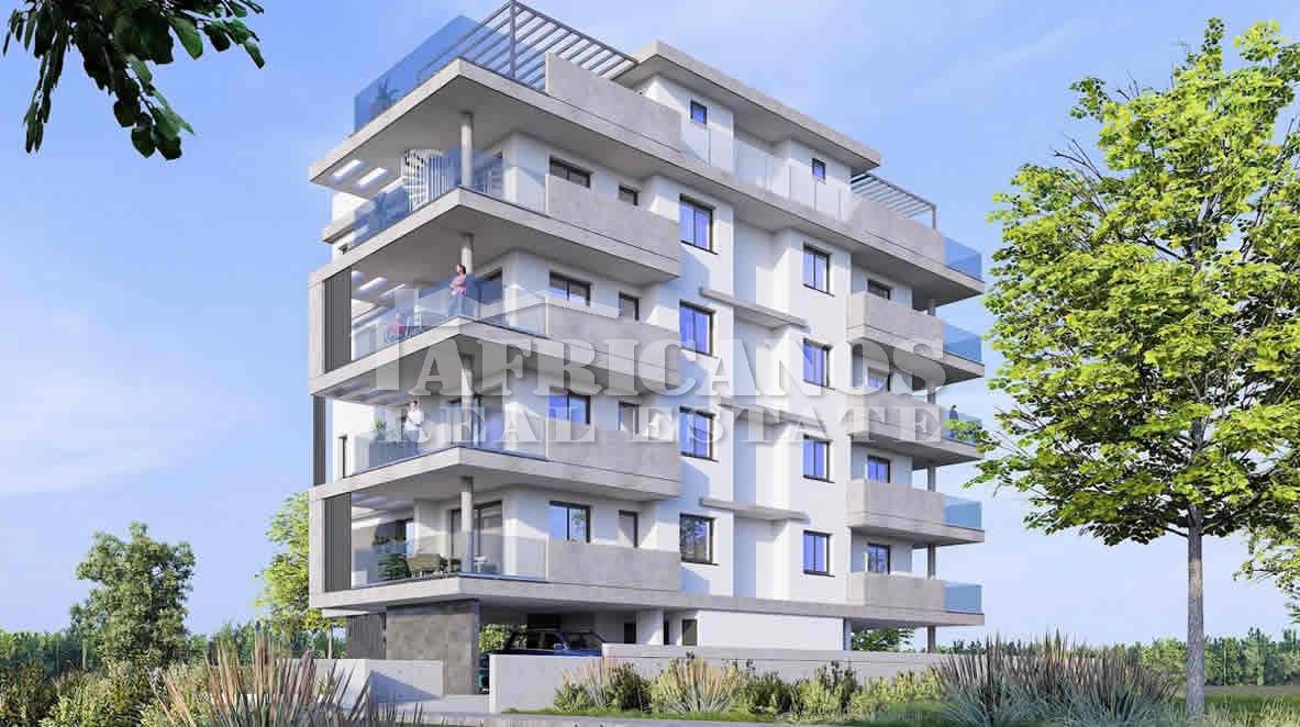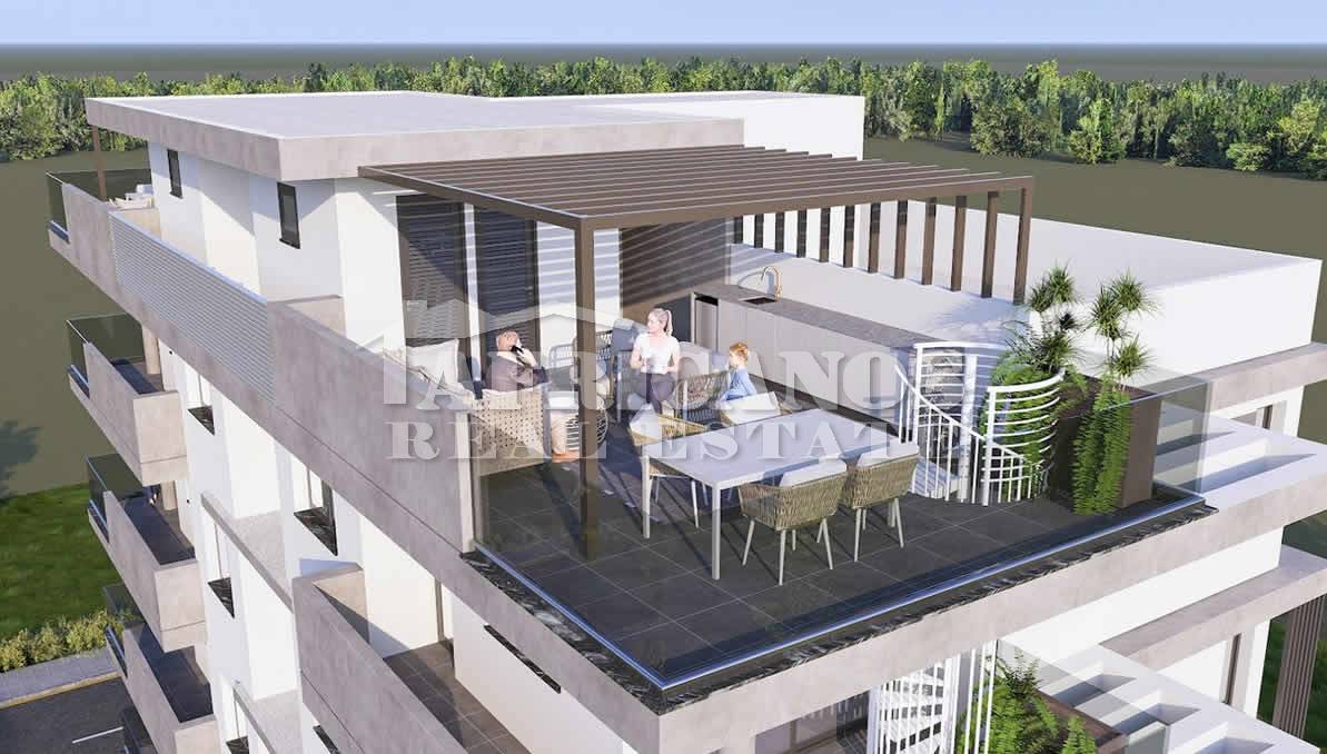 #Apartments for sale in Larnaca. The properties consist of 2 bedrooms, open plan kitchen, living room, 1 shower, 1 shower en-suite, 2wc, covered parking, storage, 21sq.m. covered verandas, 46sq.m. roof garden. Class A Energy Sufficiency.