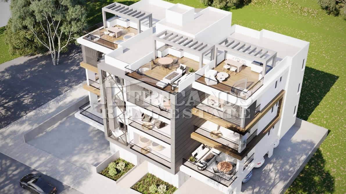 #Apartment for sale in Larnaca, Krasa area. The property consists of 2 bedrooms, open plan kitchen, living room, 1 common shower, 1 shower en-suite, 2wc, 17sq.m. covered verandas, roof garden, covered parking, storage.