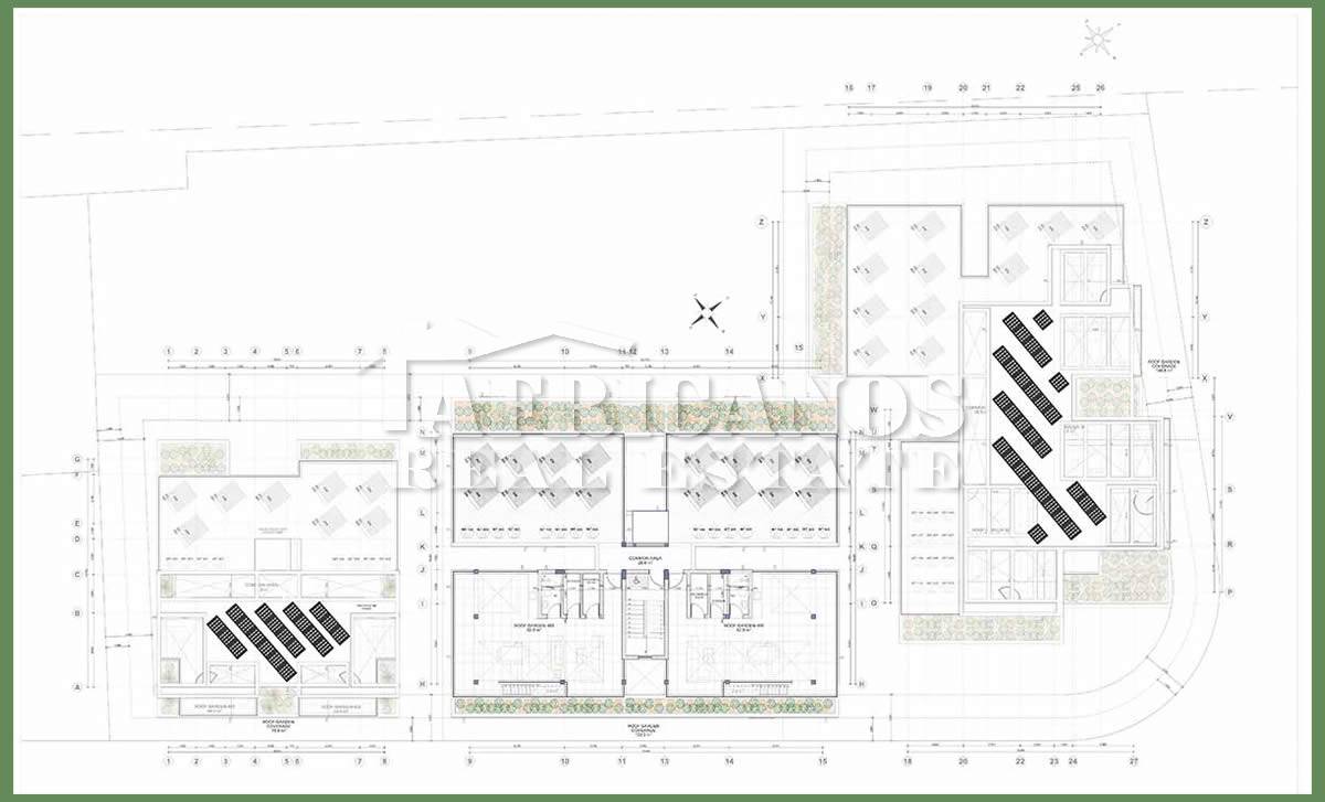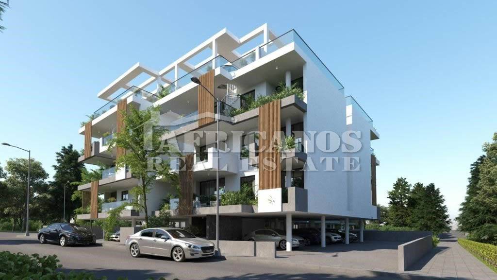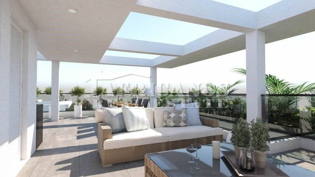#Apartment for sale in Larnaca, Metropolis area. The property consists of 2 bedrooms, open plan kitchen, living room, 1 bath, 1 shower en-suite, 2wc, 19.7sq.m. covered verandas, 70.1q.m. roof garden, covered parking, storage.