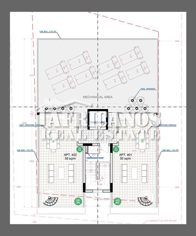 #Apartment for sale in Larnaca, Drosia area. The property consists of 2 bedrooms, open plan kitchen, living room, 1 shower, 1 shower en-suite, 2wc, 23.3sq.m. covered veranda, 50sq.m. roof garden, covered parking, storage.