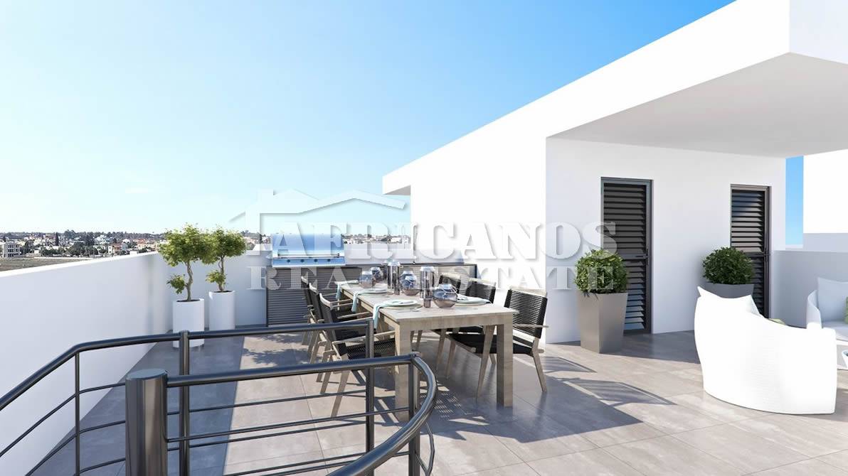 #Apartments for sale in Larnaca, MacDonalds Drive Through area. The properties consist of 3 bedrooms, open plan kitchen, living room, 3 showers, 4wc, 36.8 - 42sq.m. covered verandas, 64.2 - 72.4sq.m. roof garden, covered parking, storage, common pool.
