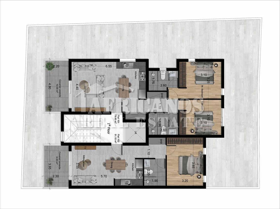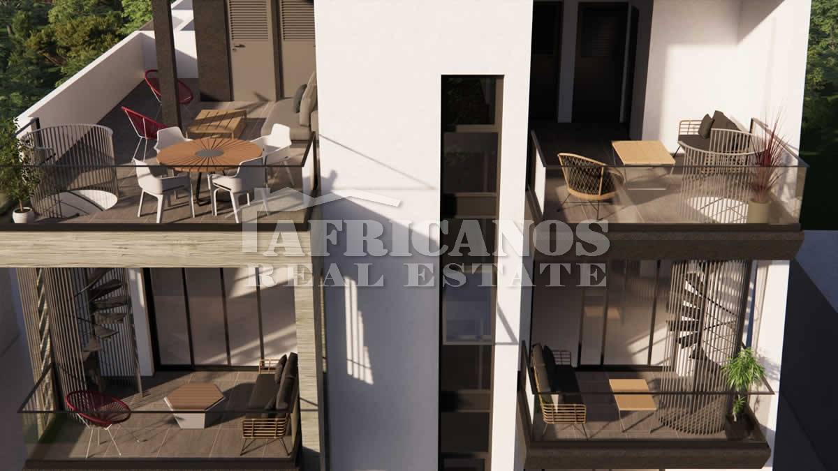 #Apartment for sale in Larnaca. The property consists of 2 bedrooms, open plan kitchen, living room, 10sq.m. covered verandas, 41sq.m. roof garden, storage, covered parking.