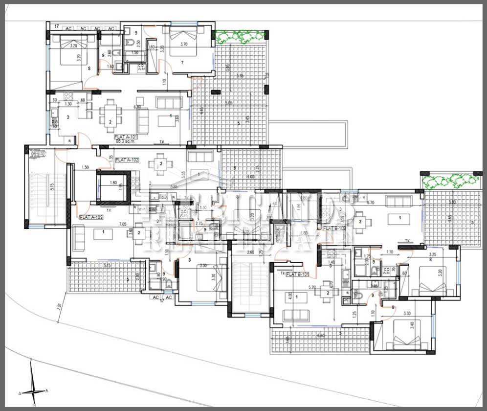 #Apartment for sale in Larnaca Marina. The property consists of 3 bedrooms, open plan kitchen, living room, 1 bath, 1 shower en-suite, 3wc, 20.40sq.m. covered veranda, 51.3sq.m. roof garden, covered parking, storage, common pool. (Total covered area is 174.3sq.m.)