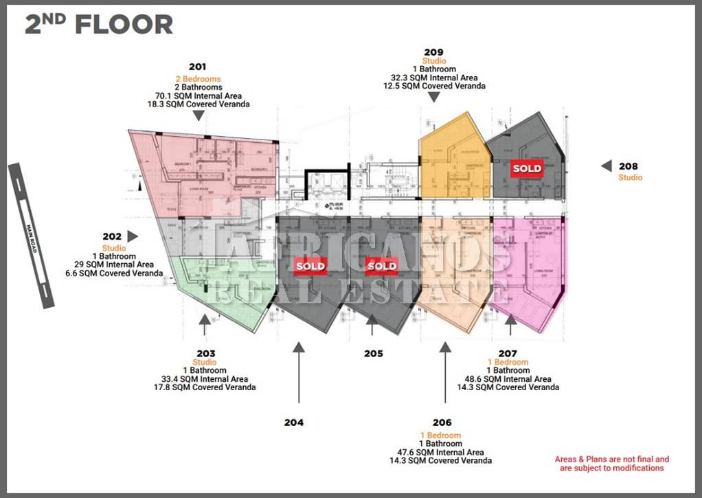 #Apartments for sale in Larnaca centre, The properties consist of 1 bedroom, open plan kitchen, living room, 1 shower, 1wc, 14.3sq.m. covered verandas.