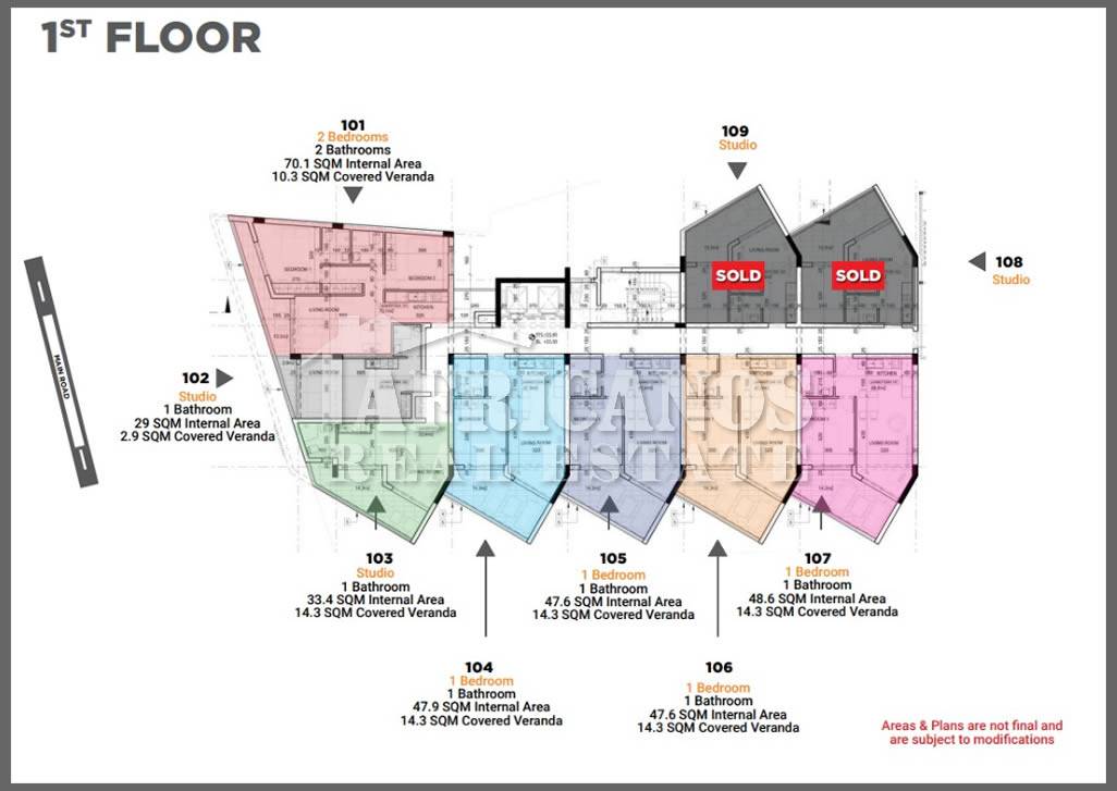 #Apartment for sale in Larnaca centre, The property consists of 2 bedrooms, open plan kitchen, living room, 1 shower, 1 shower en-suite, 2wc, 17.2q.m. covered verandas, covered parking.
